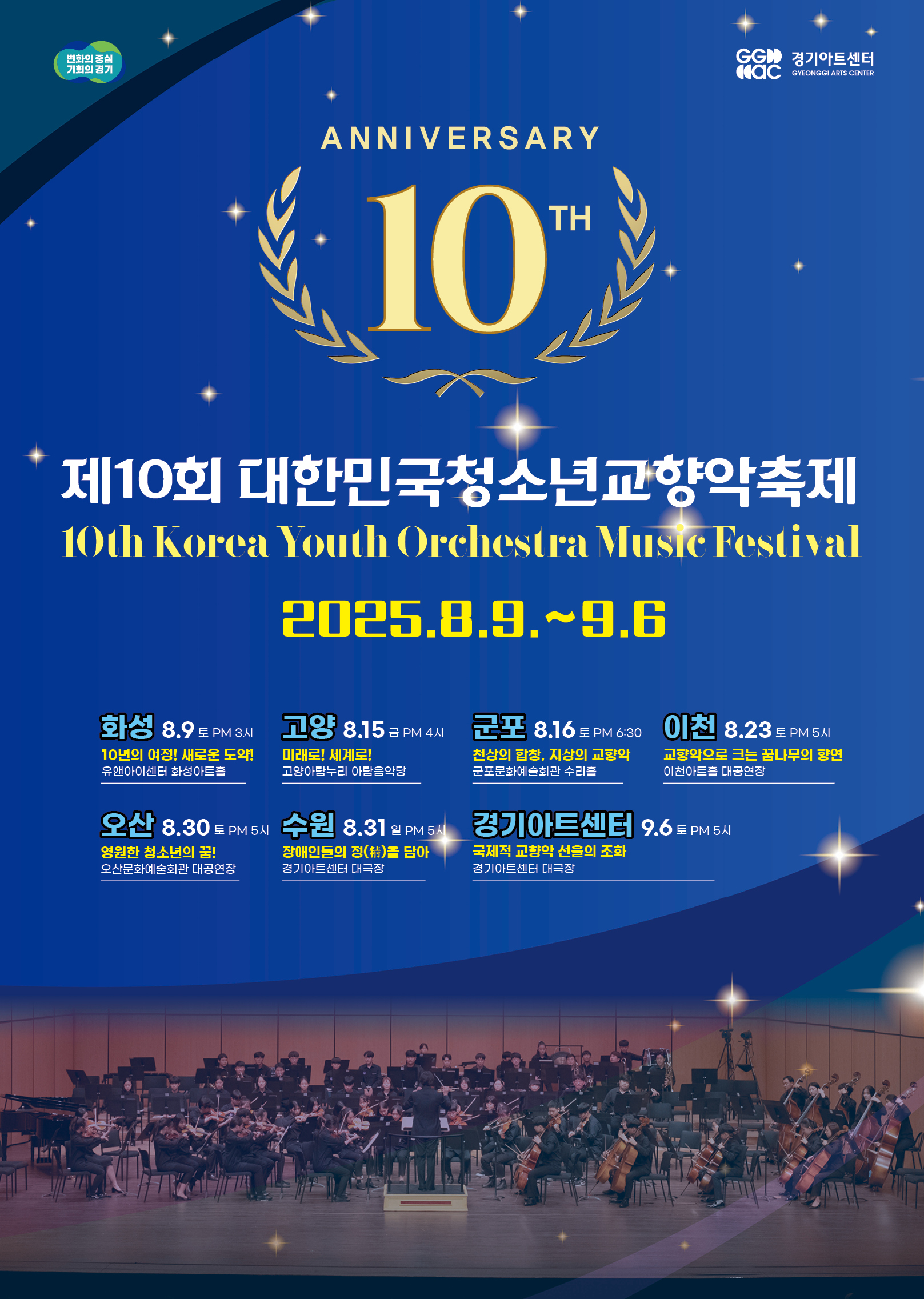 경기아트센터, 제10회 대한민국 청소년교향악축제 개최전국 클래식 꿈나무 총집합, 도내 곳곳 공연 펼쳐경기도 7개 지역, 국내외 31개 단체가 참여하는 청소년 대상 클래식 축제