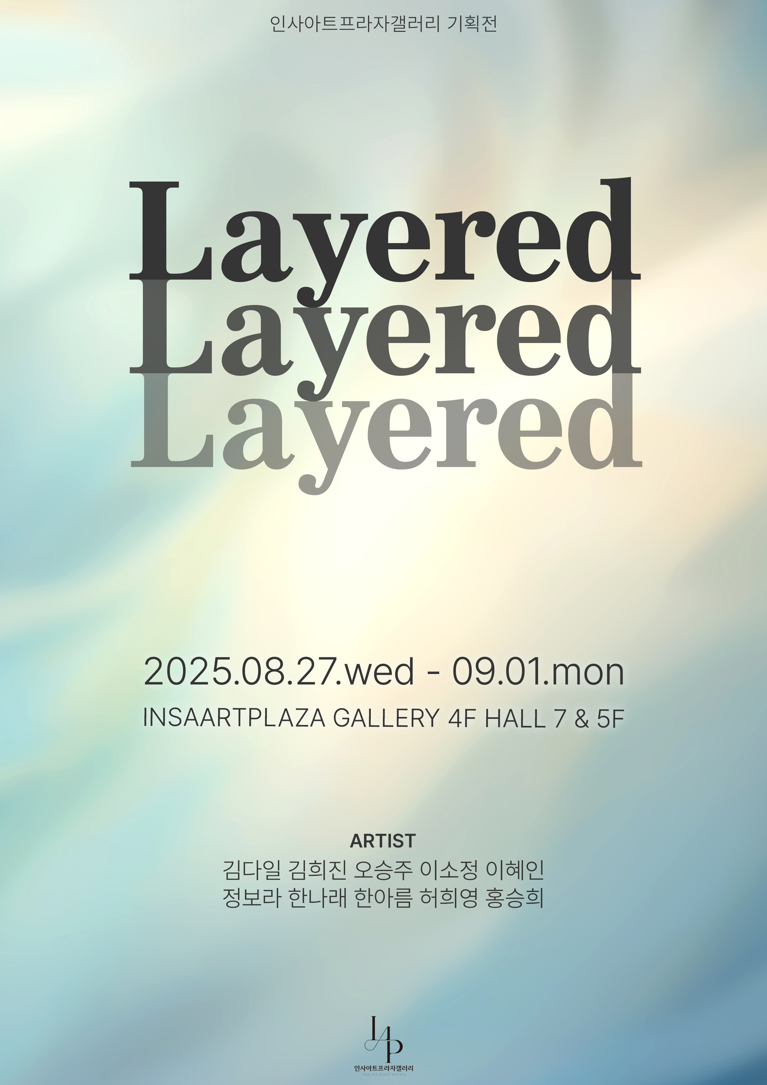 인사아트프라자 갤러리 'Layered' 기획전은 인사아트프라자 갤러리 4층 7관, 5층(서울시 종로구 인사동길 34-1)에서 8월 27일(수)부터 9월 1일(월)까지 무료로 감상할 수 있다.