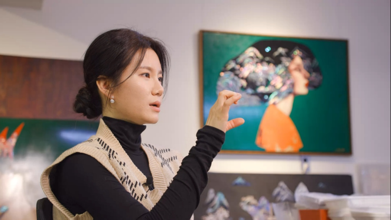 김미숙은 자개와 옻칠의 물성을 통해 여성 인물에 빛과 결을 입히고,