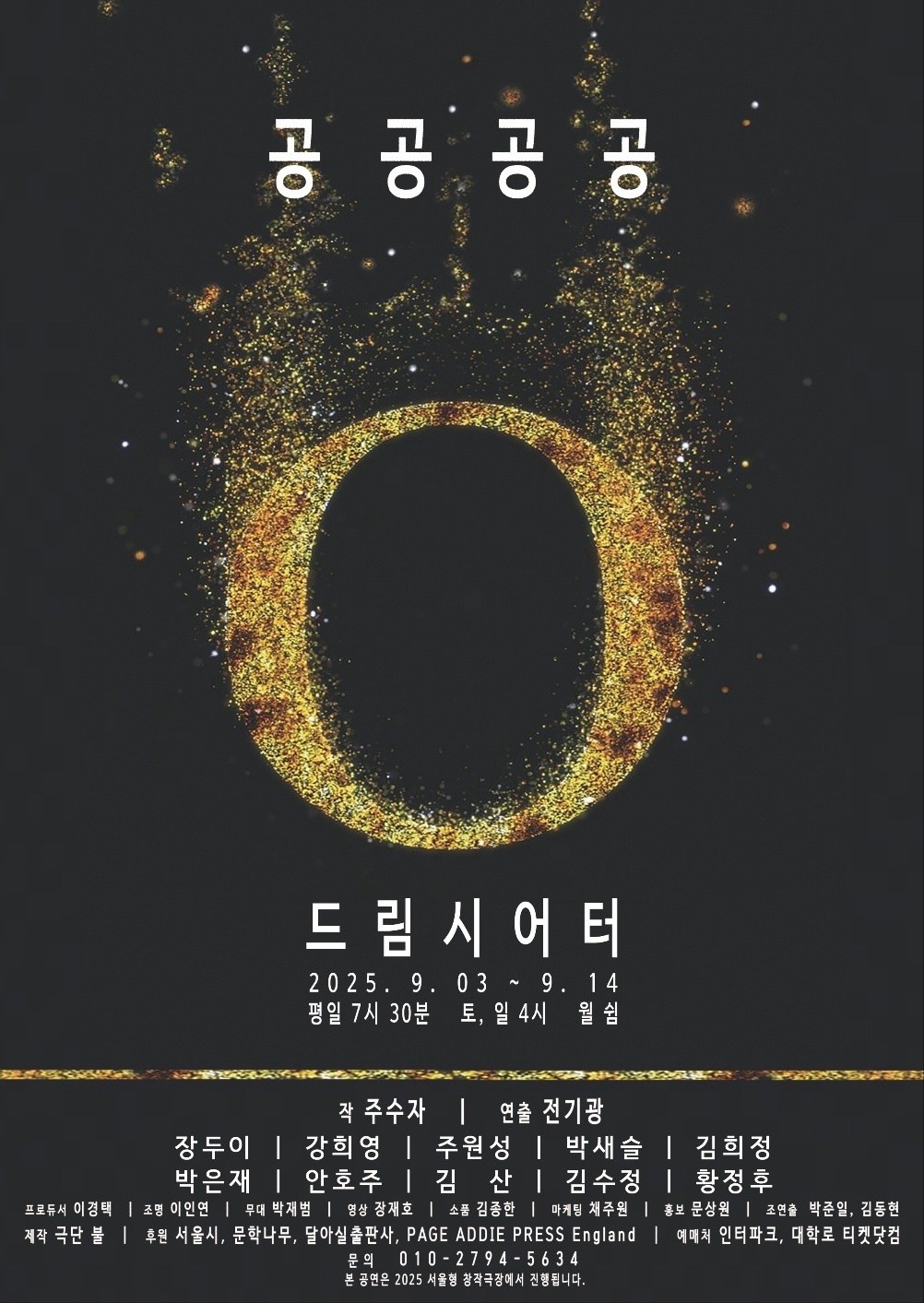 [플레이뉴스 문성식기자] 9월 3일부터 14일까지 상연되는 연극 『공공공공』은 작 주수자, 연출 전기광, 조명 이인연, 무대 박재범, 영상 장재호, 소품 김종한, 마케팅 채주원, 홍보 문상원, 조연출 박준일, 김동현 등이 참여하고 있다.