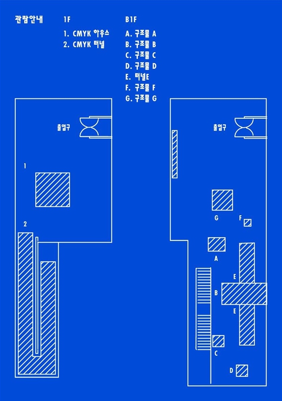 1층에 조성된 CMYK 하우스와 터널은 실제 집 규모의 공간에 들어가 CMYK(Cyan, Magenta, Yellow, Black) 네 가지 색상의 중첩을 직접 체험할 수 있는 전시 공간이다.