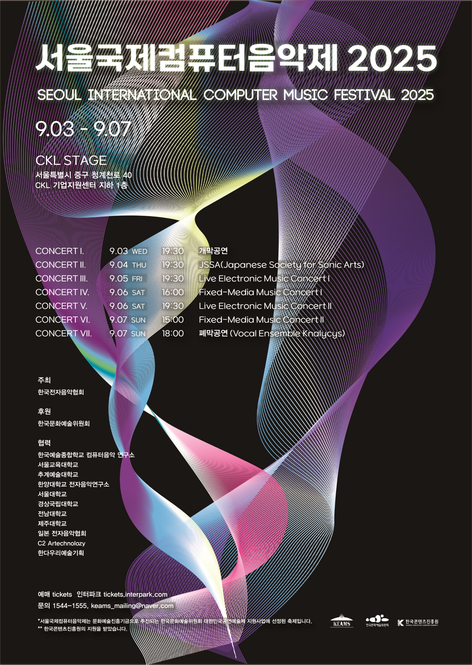 Seoul International Computer Music Festival 2025‘서울국제컴퓨터음악제 2025’ 을지로 CKL스테이지9월 3-7일 전 세계 20개국 50작품 다양한 전자음악의 향연!!