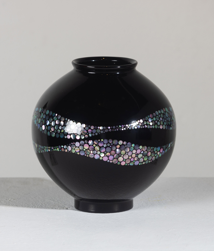 한미경 작가는 교직에 있으면서 취미로 즐기던 나무 공예에서 옻칠공예로 발전시키며 현재 전업 작가로 활동 중에 있다. 이번 전시에는 채화칠기 기법을 접목한 ‘주칠 달항아리’ 작품을 통해 옻칠예술의 현대적 재해석에 도전하고 있으며, 자개를 활용한 이미지에는 풍요, 건강, 장수, 사랑, 행복의 좋은 뜻을 가득 담은 작품이 관람객에게 호응을 얻고 있다.