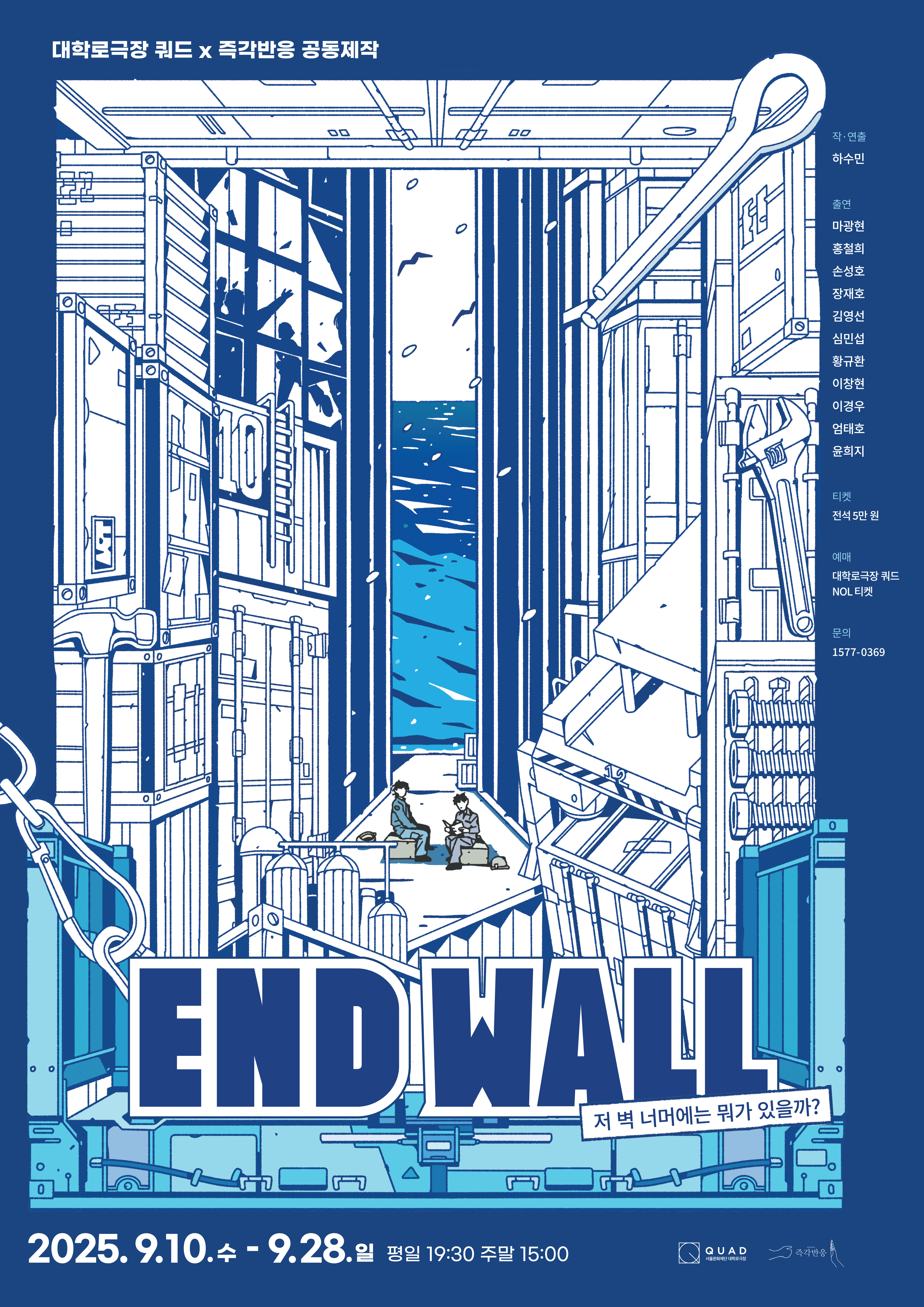 '엔드 월'은 서울문화재단 대학로극장 쿼드와 극단 즉각반응이 공동 제작한 작품으로, 동시대 사회이슈를 연극적 언어로 풀어내며 창작극의 자유로운 실험과 레퍼토리화를 지향하는 대학로극장 쿼드의 운영 철학을 반영하고 있다.