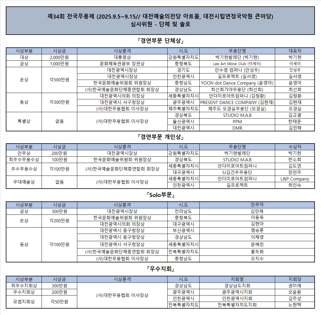 | 주관 | (사)대한무용협회 제34회 전국무용제 집행위원회 | |