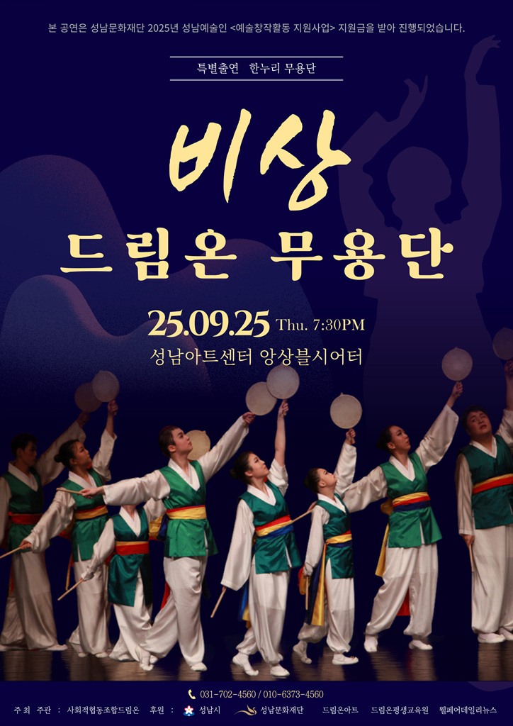 "드림온 무용단 비상" 공연을 주최한 사회적협동조합 드림온 김서정 대표는 "전통과 현대적 감성의 공연 프로그램을 직접 경험함으로써 자신감이 고취되고, 당당하게 사회에 공헌하는 자립적인 사고를 가진 예술인으로 발전을 돕고자 공연이 기획 되었다."고 말했다. 본 공연은 성남문화재단, 성남시, 드림온아트, 드림온평생교육원, 웰페어데일리뉴스에서 후원하였다.