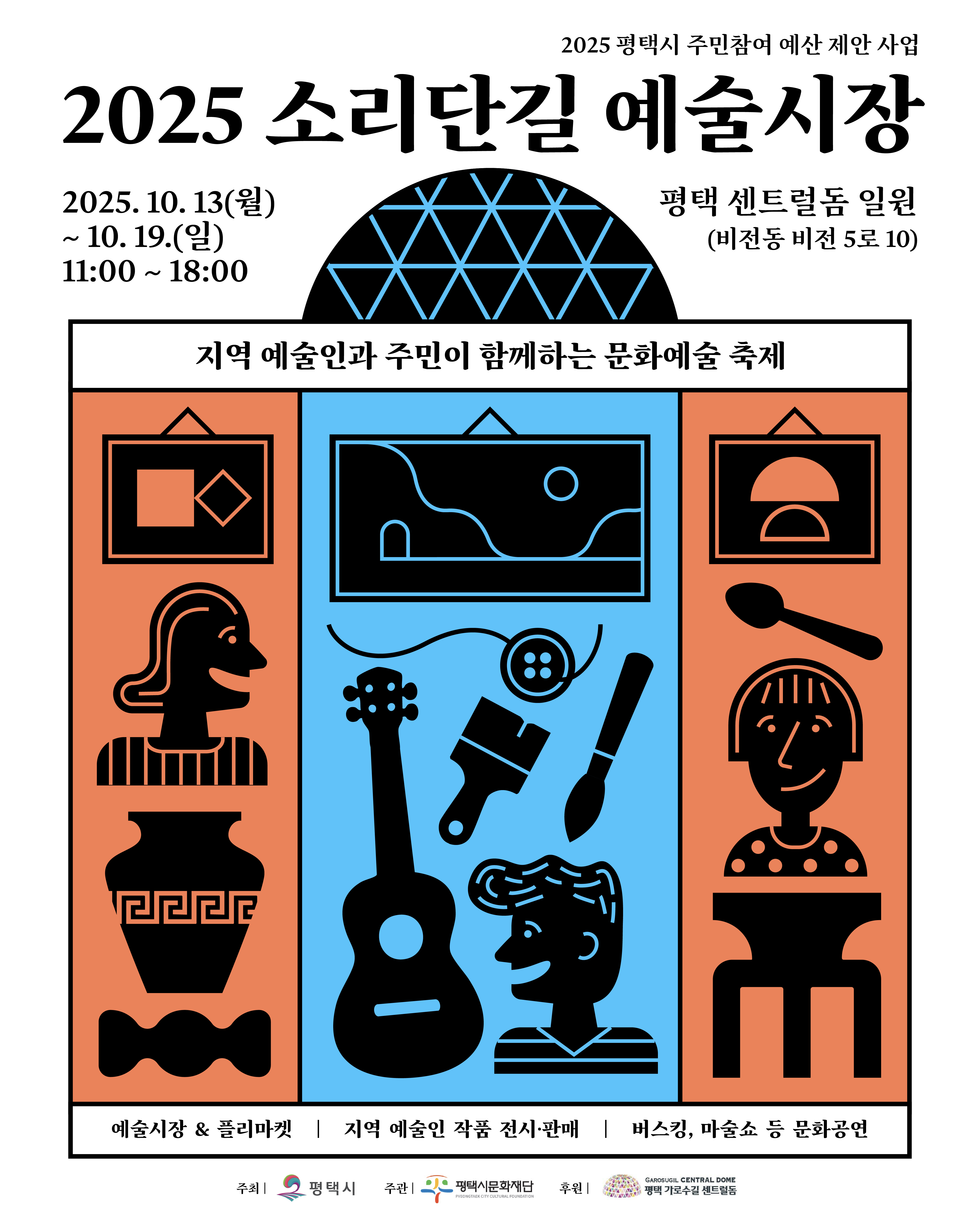 평택 가로수길 센트럴돔 일원에서 시민참여형 복합 예술장터 '2025 소리단길 예술시장'(10월 13일-19일)이 개최된다.