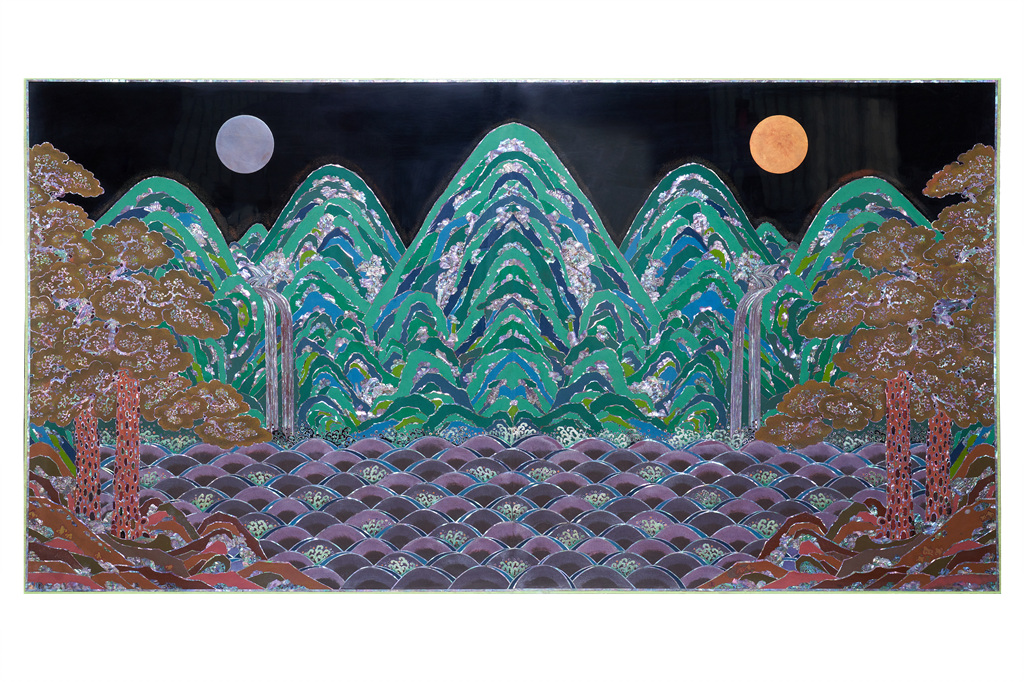 이번 전시의 대표 작품은 아름다운 산수가 천연의 빛으로 발산되는 화려한 자개농과 일월오봉도로 나전칠기의 진수를 만나볼 수 있는 기회를 제공하고 있다.