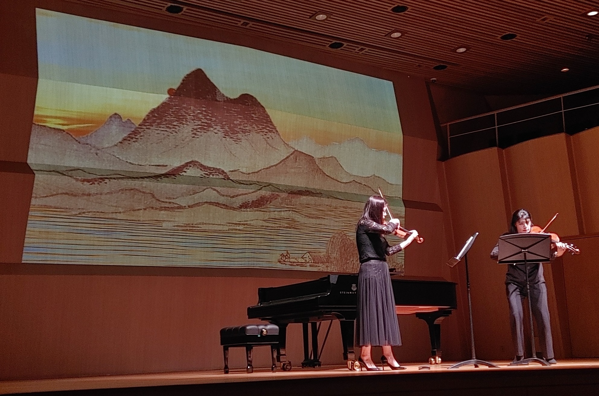 대미를 장식한 심현아의 '풍악산내총람'은 산의 치솟은 모양을 닮은 크레센도 데크레센도 다이내믹을 위주로 한 음진행에서 종묘제례악 분위기도 나고 맥놀이적 음향도 들리는 헤테로포닉한 곡이었다. 하모닉스음향과 쥬테 등 포인트로 다양한 모습을 표현한 의미있는 작품이었다.