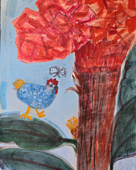 [플레이뉴스 문성식기자] 60대 후반의 한국화 작가 박은미 선생은 주로 닭을 소재로 장지에 채색화 작업을 하는데 강렬한 색조와 몽환적인 분위기를 통해 자연의 모습을 닭과 함께 작품으로 그려내는 작가이다.