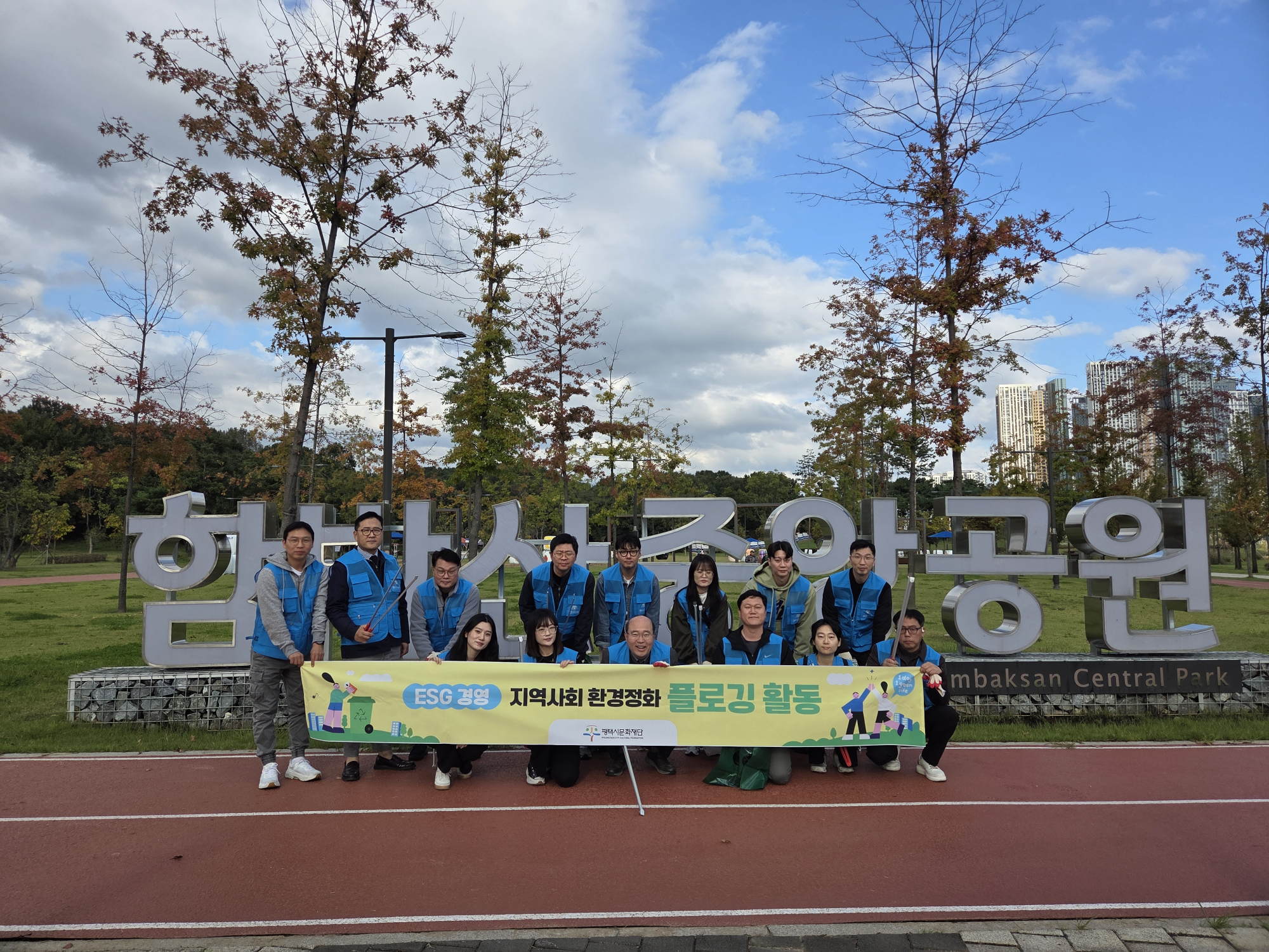 [플레이뉴스 문성식기자] (재)평택시문화재단(대표이사 이상균)은 지난 10월 22일, 개관을 앞둔 평택아트센터와 함박산중앙공원 일대에서 임직원이 함께하는 플로깅(Plogging) 환경정화 봉사활동을 진행했다.