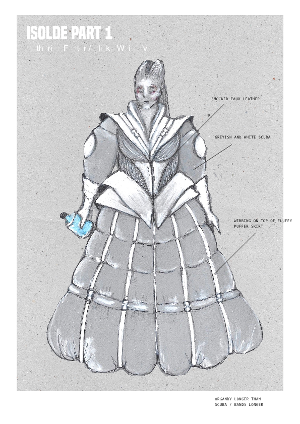 의상에는 우주복, 방어복, 해군복에서 영감 받아 '대비'라는 개념을 시각화했다. 인물의 내면과 사회적 억압의 대비, 원작의 고전적 실루엣과 현대적 소재의 대비를 함께 담았다.