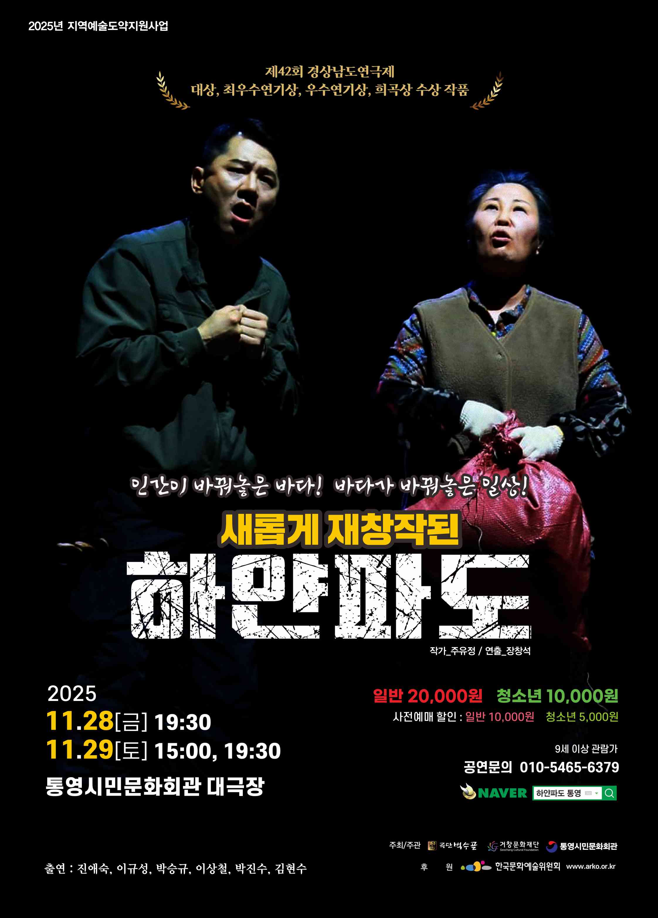 - 극단 벅수골 ‘하얀 파도’ 공연 거창문화센터, 통영시민문화회관에서