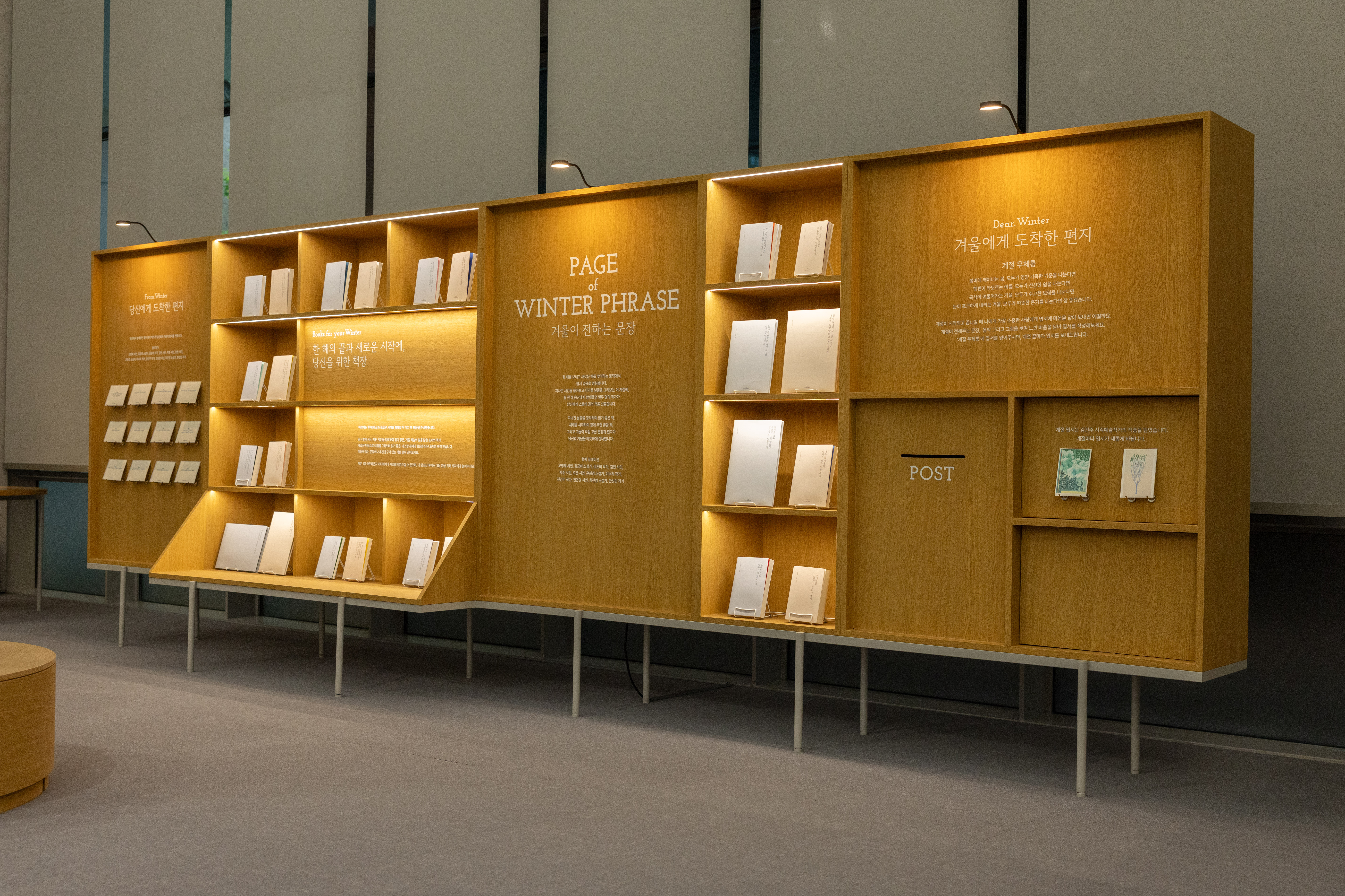 ▲문학 ‘겨울이 전하는 문장’은 그동안 용산센터의 기획 프로그램으로 함께했던 은희경 소설가, 이수지 그림책 작가, 오은 시인, 김금희 소설가 등 12명의 작가가 직접 쓴 편지와 함께 ‘한 해를 보내며, 새해를 맞이하며’ 곁에 두기 좋은 책들을 전시한다.