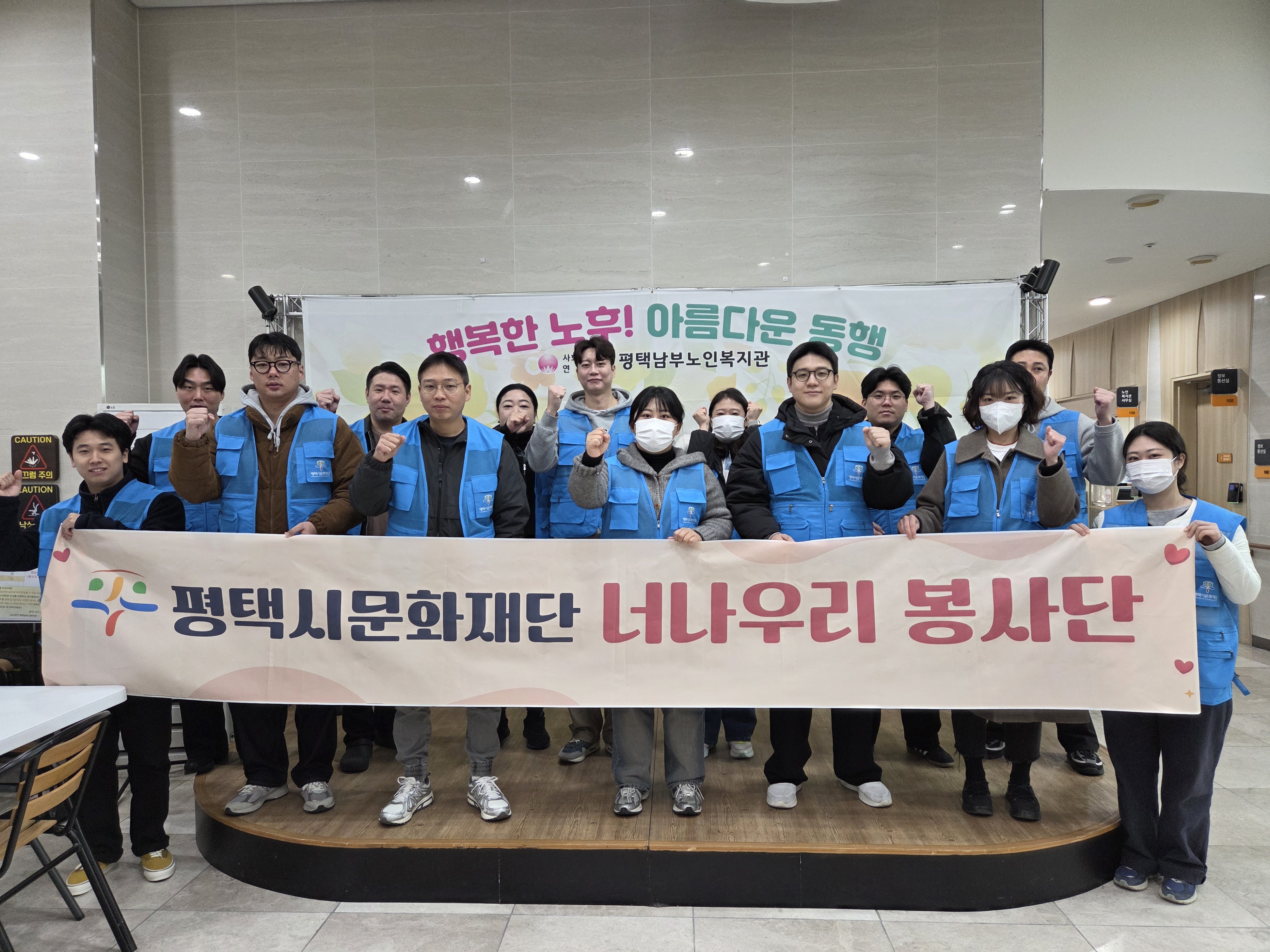 [플레이뉴스 문성식기자] 평택시문화재단(대표이사 이상균) 임직원으로 구성된 ‘너나우리 봉사단’이 지난 19일 평택 남부노인복지관에서 자원봉사활동을 진행했다고 밝혔다.