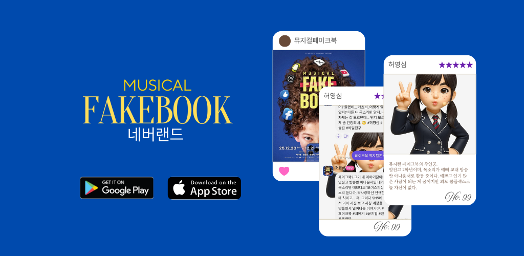 창작뮤지컬 ‘페이크북’은 영진고 방송반 아나운서 ‘영심’이 SNS 속 완벽한 외모의 ‘리아’의 사진을 도용해 하루아침에 스타가 되면서 벌어지는 사건을 그린 작품이다.