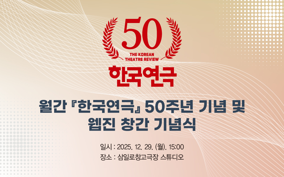 [플레이뉴스 문성식기자] (사)한국연극협회(이사장 손정우)는 오는 2025년 12월 29일(월) 오후 3시 삼일로창고극장 스튜디오(2층)에서 월간 『한국연극』 간행 50주년 및 웹진 창간 기념식을 개최한다.