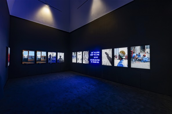 〈창 2003–2005〉는 2년에 걸쳐 진행된 프로젝트로, 모하메드 카짐은 한 아파트 창문에서 보이는 동일한 풍경을 반복적으로 촬영하며 고층 건물들이 점차 수평선을 가리는 과정을 기록했다. 이 설치 작업은 컬러 비디오, LED가 삽입된 아크릴 패널, 그리고 라이트박스에 담긴 14점의 크로모제닉 프린트로 구성되며, 아랍에미리트의 도시 개발이 시간, 노동, 공간의 점유를 통해 시각적으로 어떻게 변모하는지를 보여준다. 고정된 시점에서 촬영된 이 이미지는 현장에서 일하는 노동자들의 움직임과 흔적을 주의 깊게 담아내며, 관람객이 작가의 시선을 공유하도록 한다. 느리고 점진적으로 진행되는 변화를 통해 작품은 개발과 현대화 과정이 물리적 시야뿐 아니라 상상력의 지평까지 어떻게 좁혀놓는지를 시사하며, 아랍에미리트의 일상적 풍경이 소속감과 상실감을 동시에 담고 있음을 드러낸다. | |