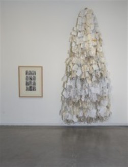 | 하산 샤리프(Hassan Sharif) 〈사전〉, 2015, 접착제, 사전 페이지, 밧줄, 385×170×65cm. 샤르자 예술 재단 소장. 샤르자예술재단 소장. 하산 샤리프(Hassan Sharif), 〈사전〉, 1981, 아카이벌 종이에 디지털 잉크젯 프린트, 59×83cm. 샤르자예술재단 소장. |