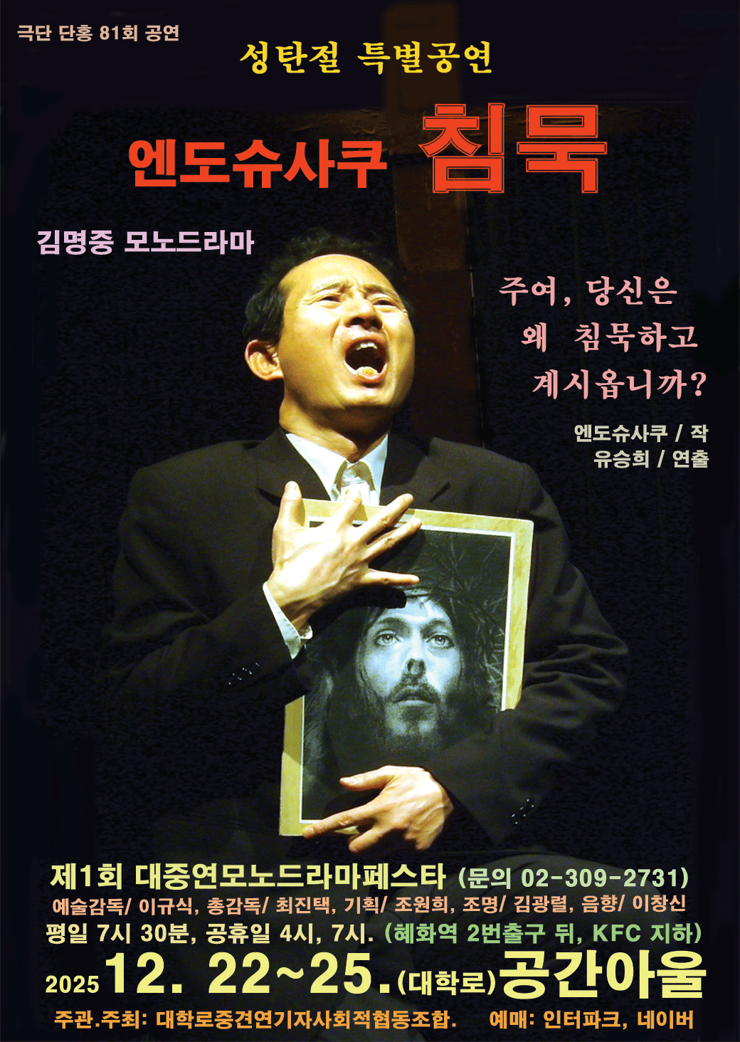 종교에 대한 박해와 배교, 신의 살아있음에 대한 증언을 고백하는내용이다. 온 몸을 던지는 김명중배우의 열연으로 관객들이 쉽사리 자리를 뜨지 못한다.