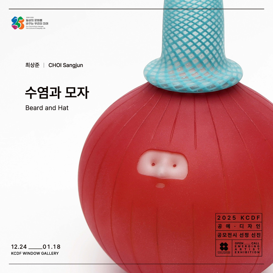 [플레이뉴스 문성식기자] 한국공예‧디자인문화진흥원(원장 장동광, 이하 공진원)은 작가들의 창작 발표 활동을 지원하는 ‘2025 KCDF 공예‧디자인 공모전시 신진부문’에 선정된 유리공예 작가 최상준(CHOI Sangjun)의 개인전 《Beard and hat》을 오는 12월 24일부터 2026년 1월 18일까지 인사동 KCDF갤러리에서 개최한다고 밝혔다.