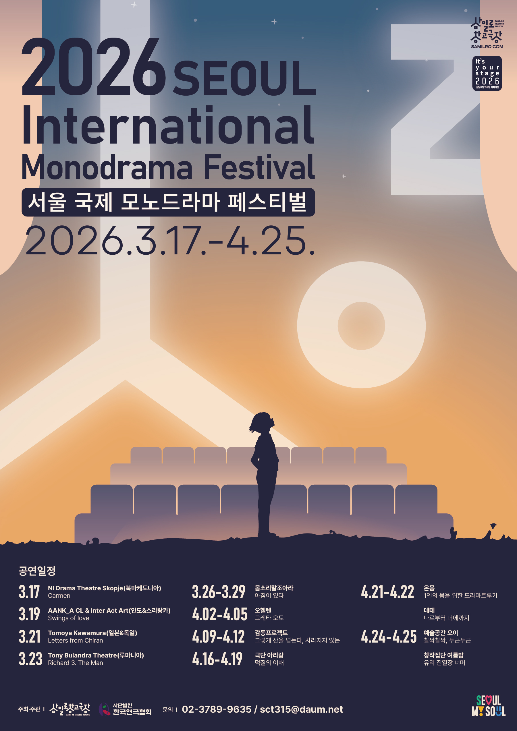 [플레이뉴스 문성식기자] 삼일로창고극장이 오는 3월 17일부터 4월 25일까지 '2026 서울 국제 모노드라마 페스티벌'을 개최한다.