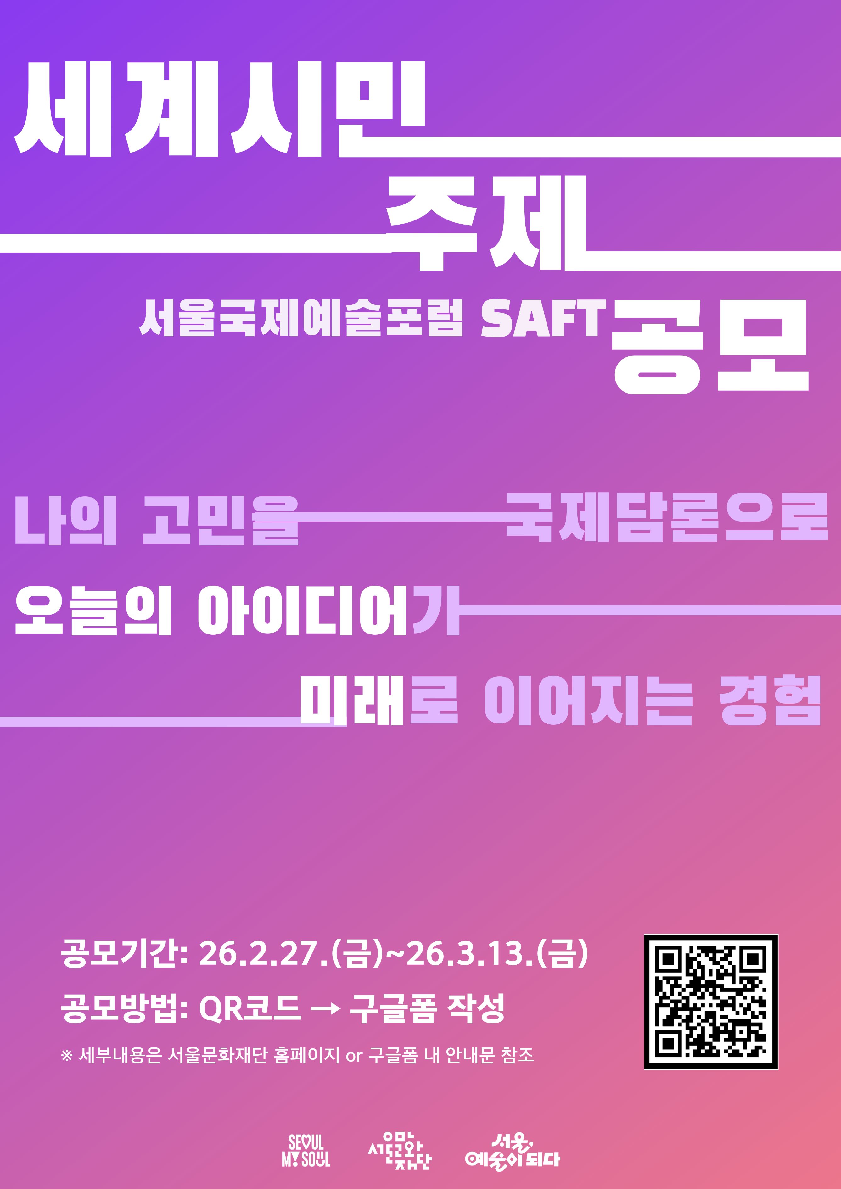 ▲ 오늘 27일(금), 세계 시민 대상 서울국제예술포럼 SAFT ‘주제·아이디어’ 공모