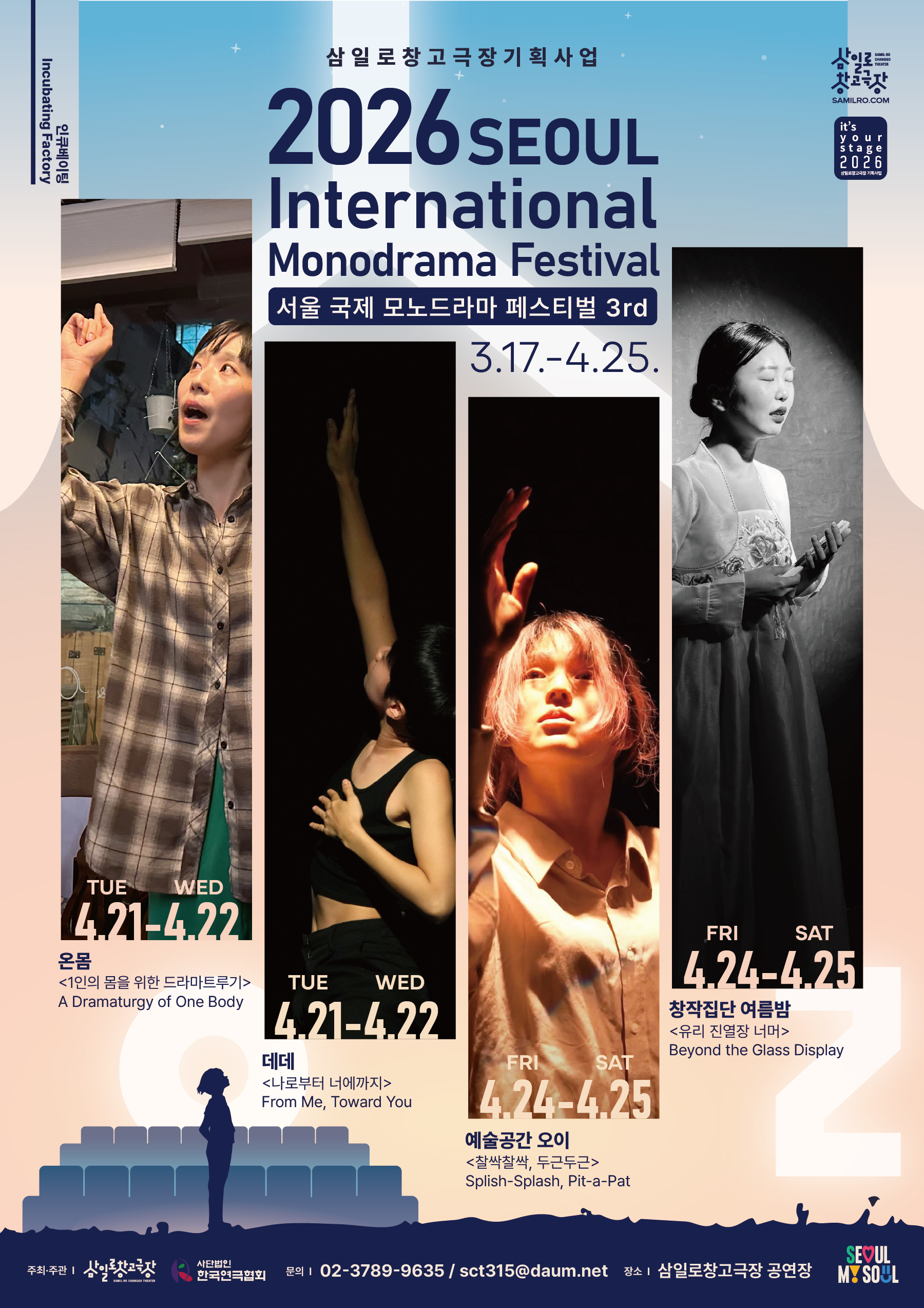 서울 명동의 모노드라마 성지 삼일로창고극장에서 열리는 이번 페스티벌은 해외 거장들의 초청작부터 국내 신진 예술가들의 실험적인 무대까지, 한 사람의 목소리와 몸짓으로 공간을 가득 채우는 모노드라마의 진수를 선보일 예정이다.