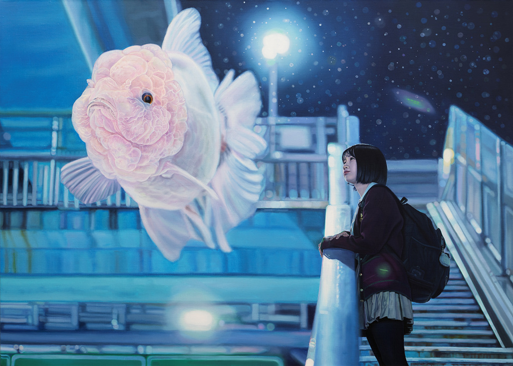 나는 이 공간 안에 현실과 비현실, 두 세계의 존재를 공존시킨다. 빛은 이질적인 두 존재를 인물과 동물, 현실과 환상을 감싸며 하나의 장면으로 연결하는 감정의 매개체다.
