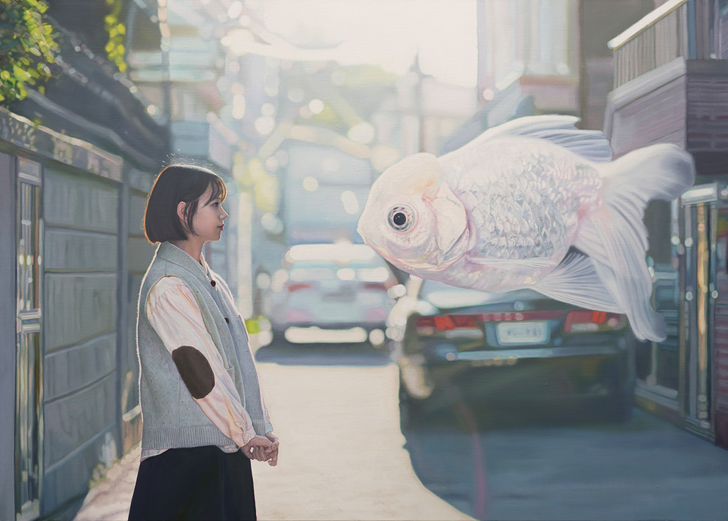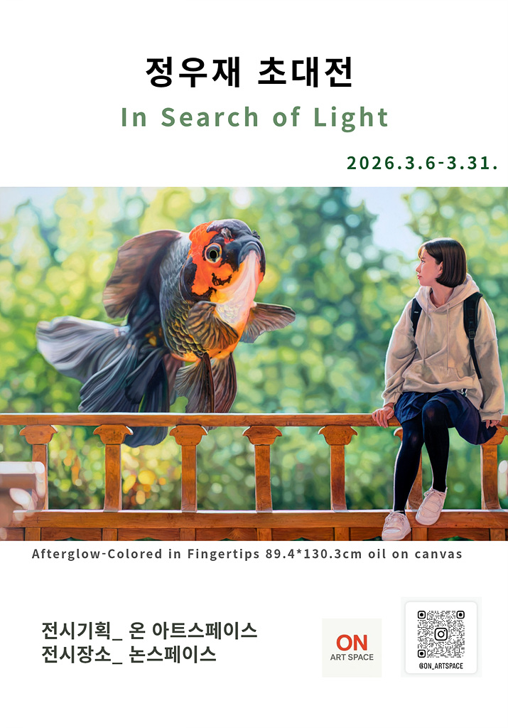 '빛을 찾아서(In Search of Light)' 개인전을 실시 중인 정우재 작가는 "나의 작업은 일상 속 환상이 자연스럽게 스며든 현실을 그린다. 상상과 현실의 경계는 흐려지고, 현실적 존재와 비현실적 존재가 서로 소통하며 감정의 공명을 만들어낸다."고 말했다.