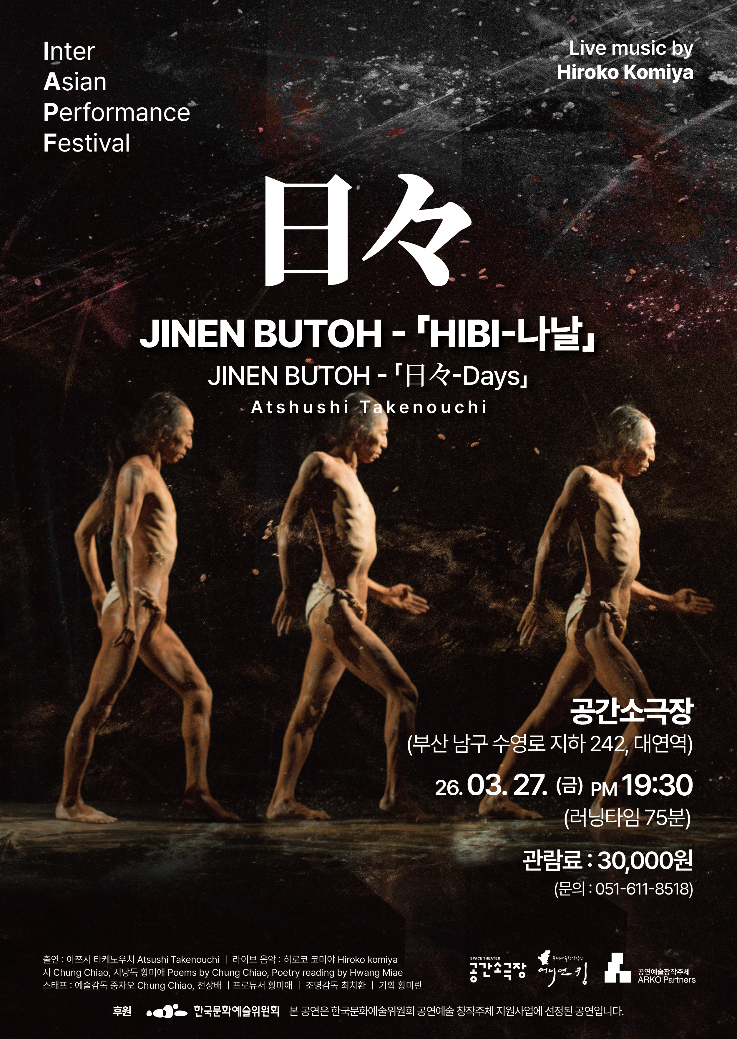 이어 3월 27일에는 아쯔시 타케노우치의 솔로 부토 공연 〈HIBI – days〉가 공간소극장에서 공연된다.