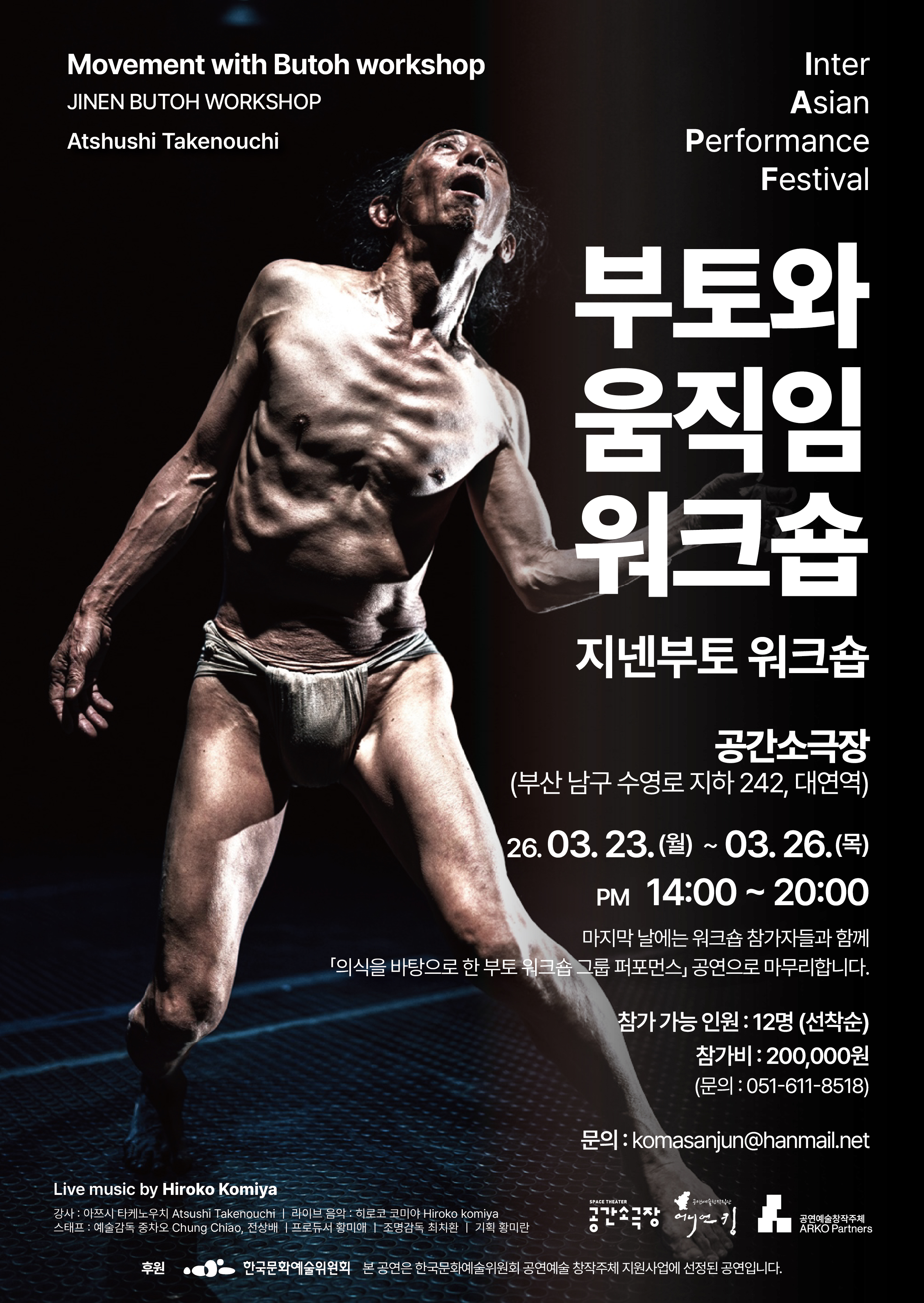 3월 23일부터 26일까지는 일본의 부토 무용가 아쯔시 타케노우치가 진행하는 지넨 부토(Jinen Butoh) 워크숍이 열린다.