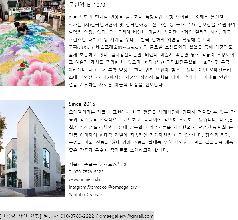 삼청동의 정취와 어우러진 이번 전시는 4월 4일까지 이어지며, 관람객들은 작가가 실처럼 조용히, 그리고 단단하게 이어가는 ‘사이’의 풍경을 오매갤러리에서 만날 수 있다.