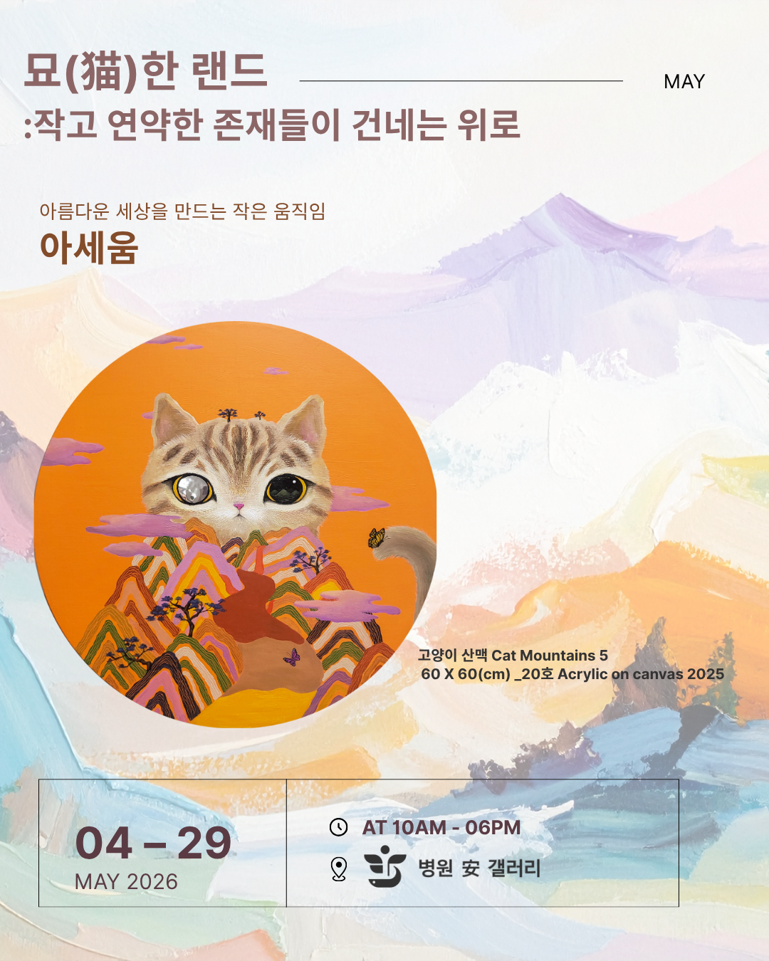 [플레이뉴스 문성식기자] 병원 安 갤러리는 2026년 5월 4일부터 5월 29일까지 아세움 작가와 한아름 작가의 2인전 '묘한 랜드 작고 연약한 존재들이 건네는 위로'를 개최한다.