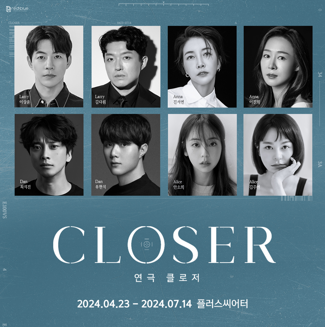 [플레이뉴스 문성식기자] ㈜레드앤블루가 8년만에 돌아오는 웰메이드 연극 '클로저'의 캐스팅과 티저 포스터를 공개했다.