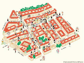 그녀는 작품 속 캐릭터 뿐 만 아니라 배경 마저도 생동감 있게 그리는 만화적 표현을 사용한다. 이러한 표현은 건축과 인물 모두, 이야기를 전하는 주체로 만든다.