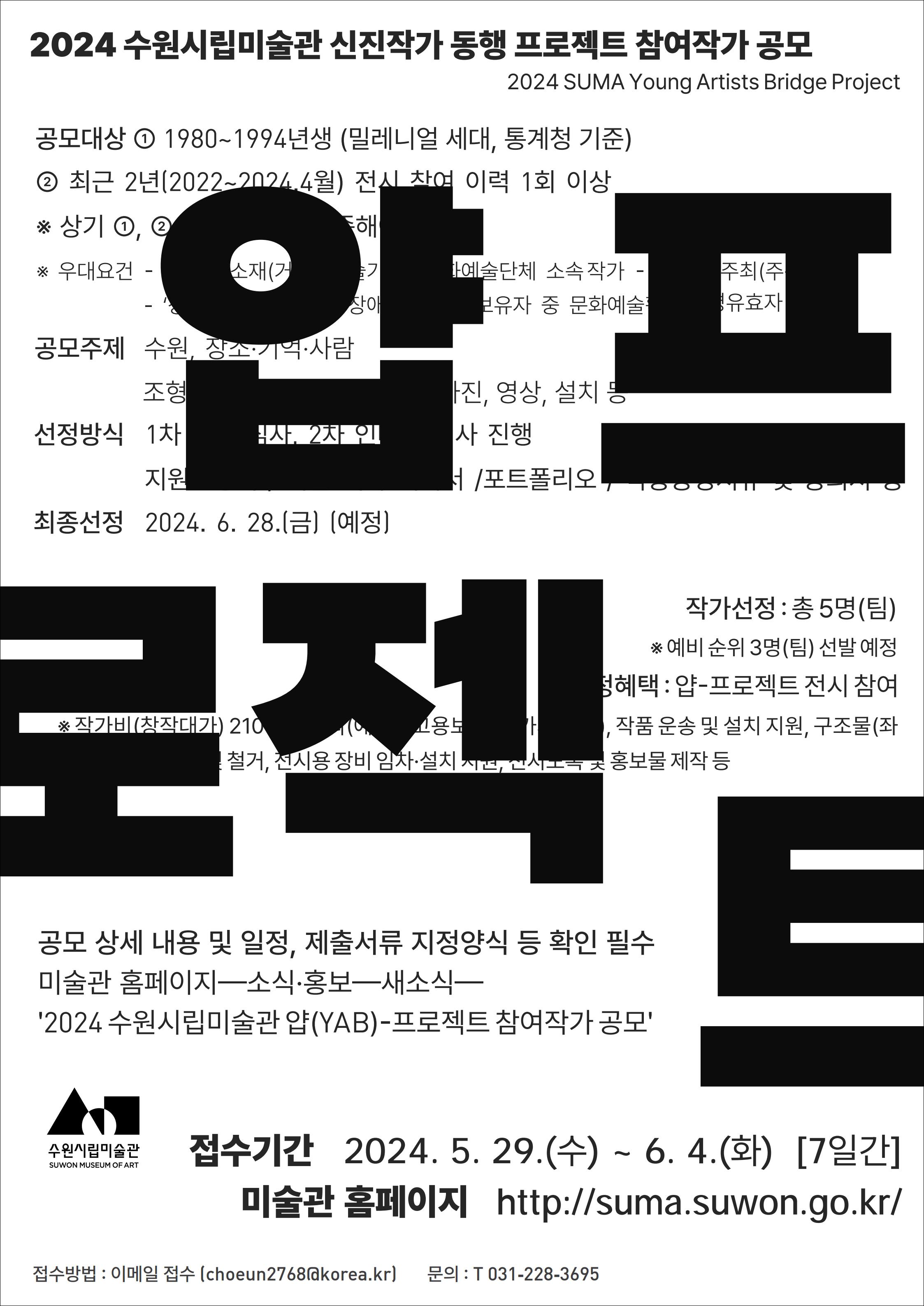 ʻ미술관 홈페이지-새소식-2024 수원시립미술관 ʻ얍(YAB)-프로젝트 참여작가 공모ʼ