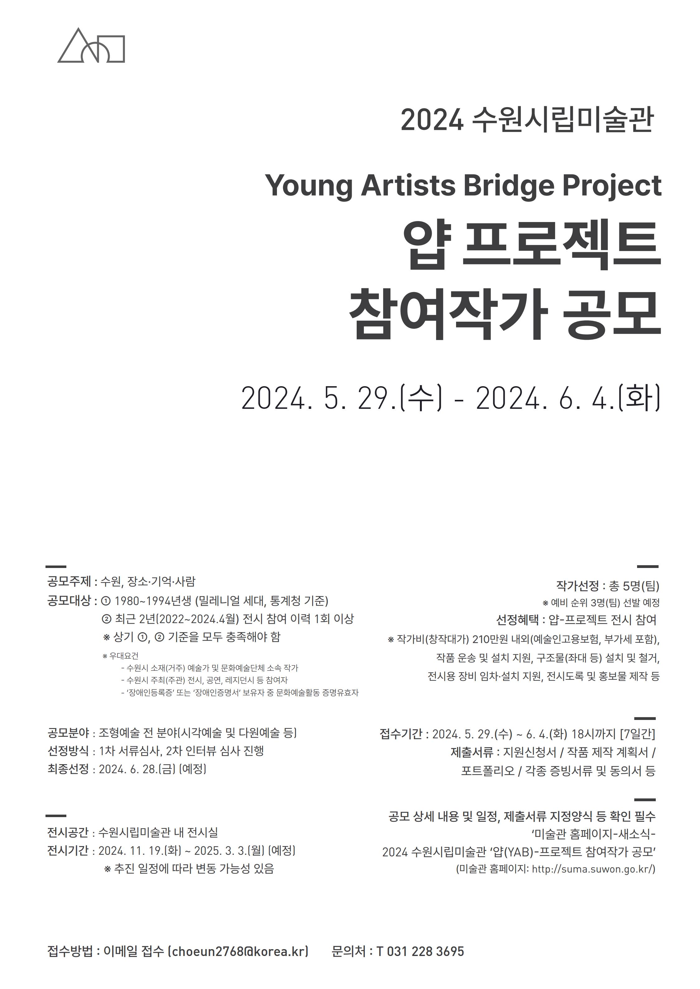 ⚪ 공 모 명 : 2024 수원시립미술관 ʻ얍(YAB)-프로젝트ʼ 참여작가 공모