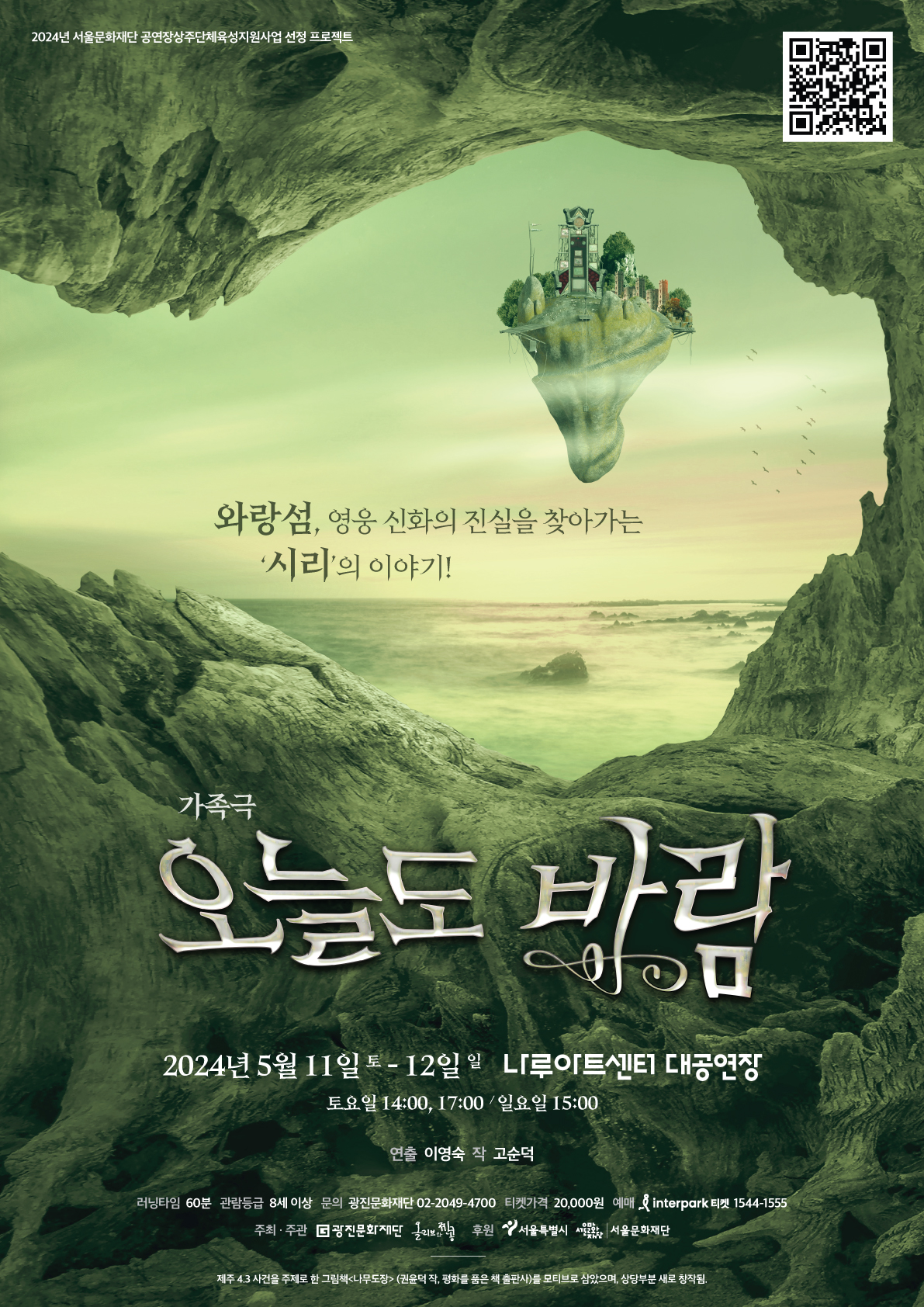 ‣ 공 연 명 : 가족극 '오늘도 바람' ‣ 공연일시 : 2024. 5. 11(토) ~ 2024. 5. 12(일) ※ 토요일 14시, 17시 / 일요일 15시 ‣ 공연장소 : 나루아트센터 대공연장 ‣ 주최/주관 : (재)광진문화재단, 올리브와 찐콩 ‣ 소요시간 : 60분 ‣ 입장연령 : 8세 이상 ‣ 입 장 권 : 전석 20,000원 ‣ 예약문의 : 02-2049-4700 |