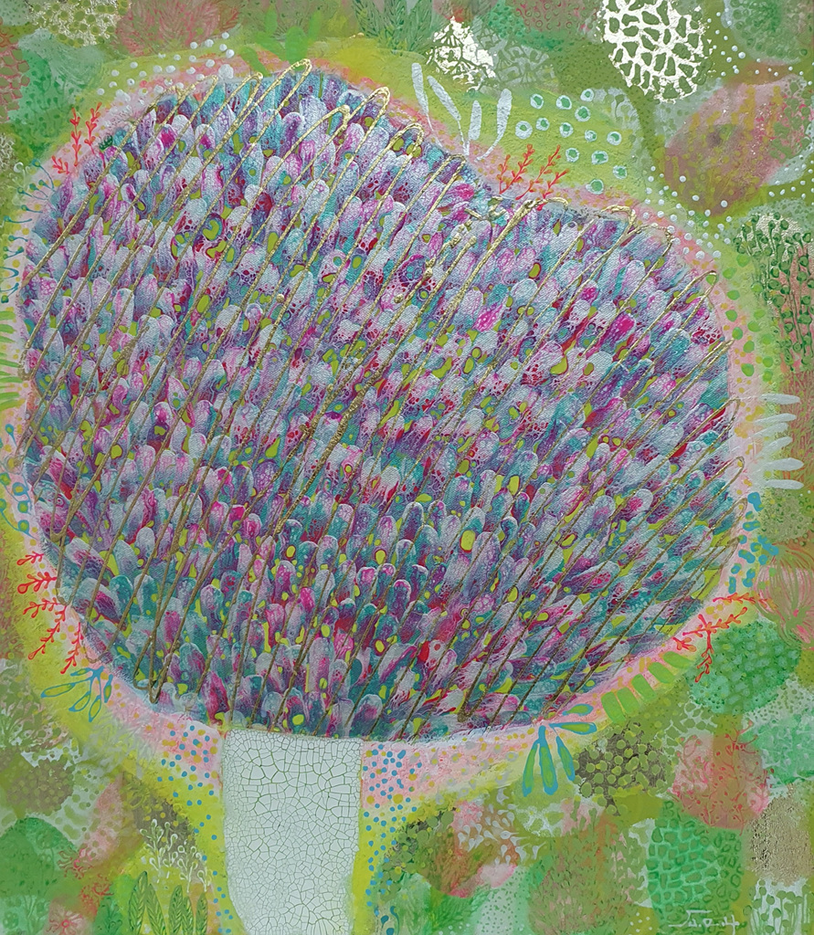 [플레이뉴스 문성식기자] 작품에 꿈과 희망을 표현하기 위해 밝은 채색 위주로 이미지가 완성되어 캔버스 전체에서 발산되는 느낌이 온화하다.