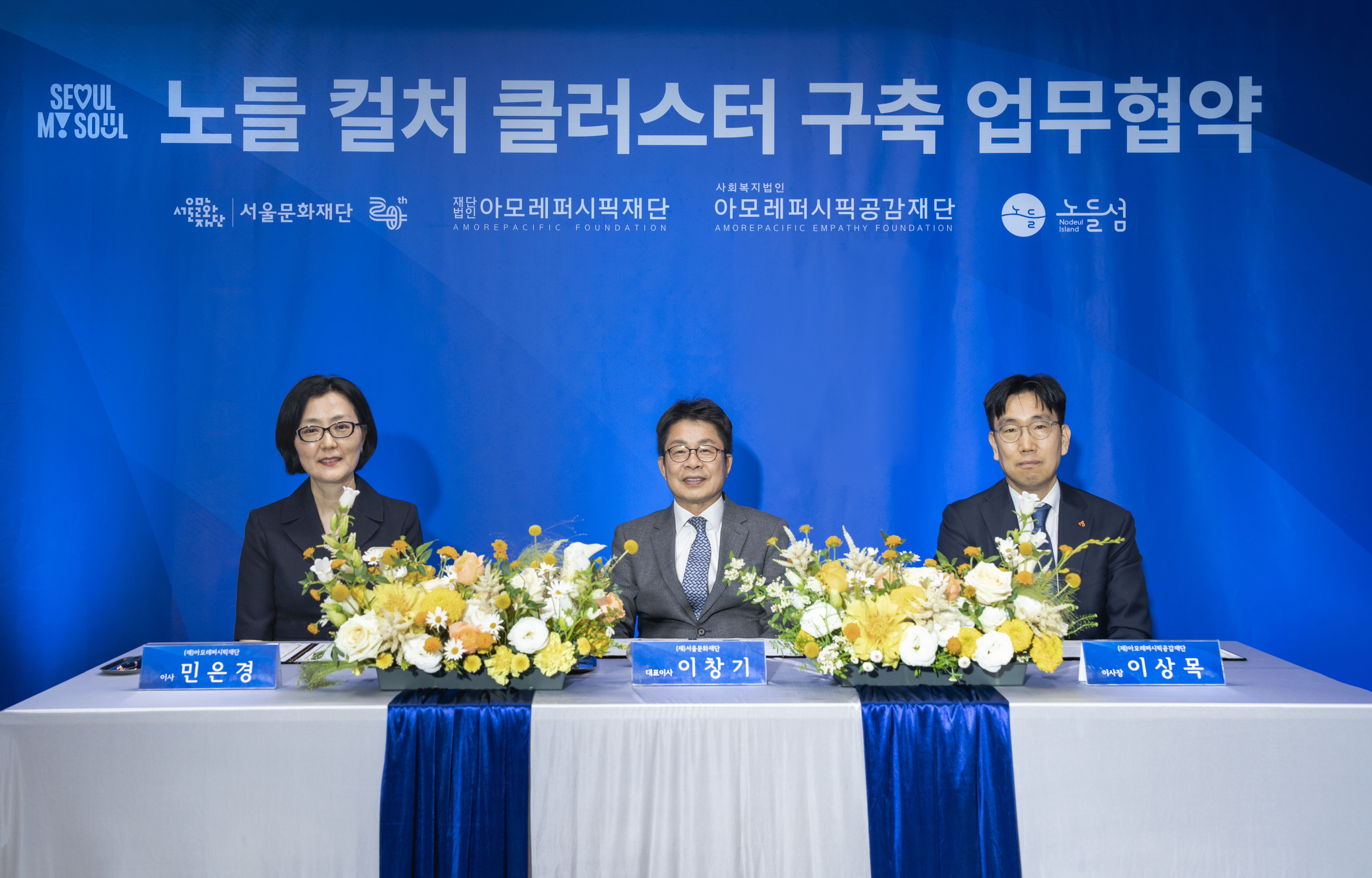 1호 협력 기관은 아모레퍼시픽재단과 아모레퍼시픽공감재단으로 지난 23일 노들섬 복합문화공간에서 서울문화재단(대표이사 이창기), 아모레퍼시픽 재단(이사장 서경배), 아모레퍼시픽공감재단(이사장 이상목)이 모여 ‘노들 컬처 클러스트 구축을 위한 공동기획 및 협력사업 추진을 위한 3자 협력 업무협약’을 체결했다.