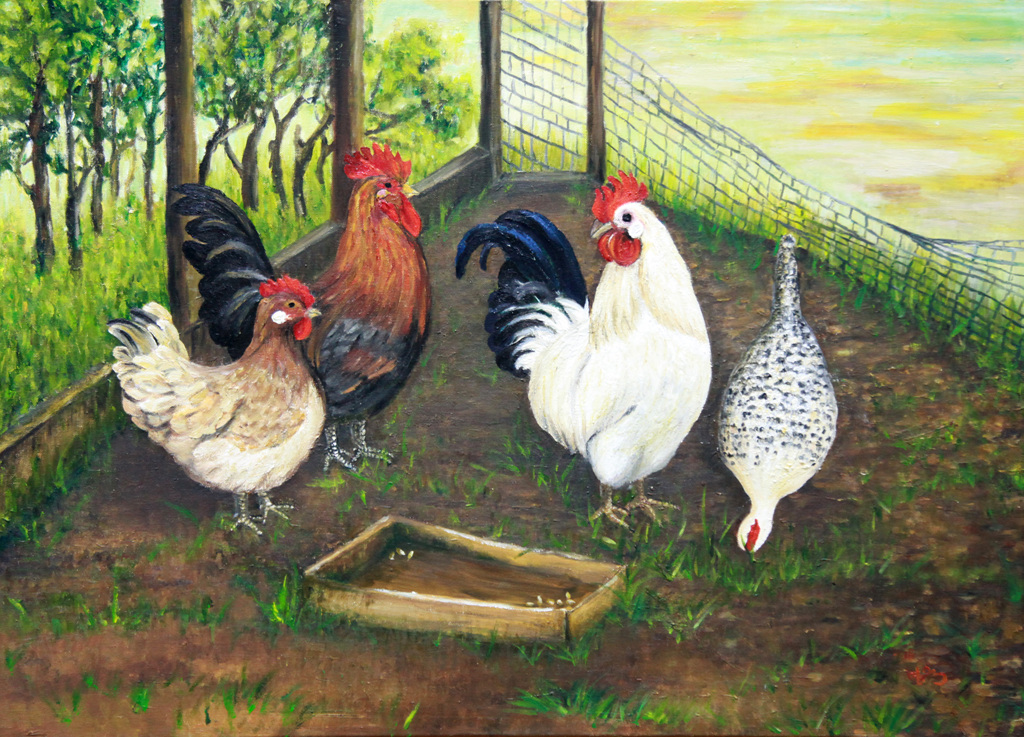 도약의 기회로 삼으려는 긍정적 사고를 닭들의 풍경으로 빗대어 관람객과 소통하려고 한다. 닭의 무리를 사실적으로 묘사하여 말하고자 하는 주제를 명확하게 구현해 진지함으로 빠져들게 한다.