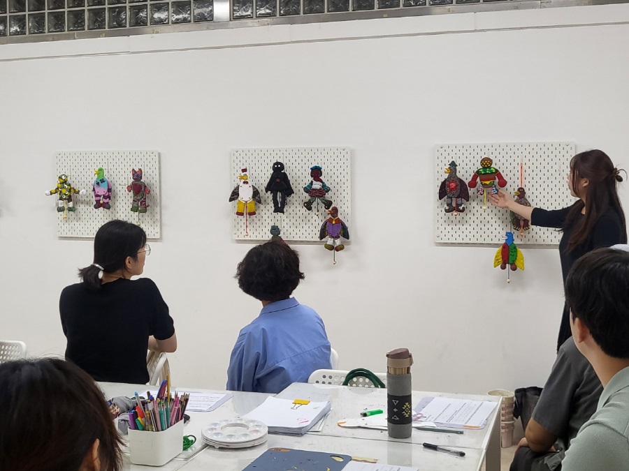- 워크숍에서 제작한 드로잉북, 스툴, 아트 피규어 등 결과물 및 과정 소개