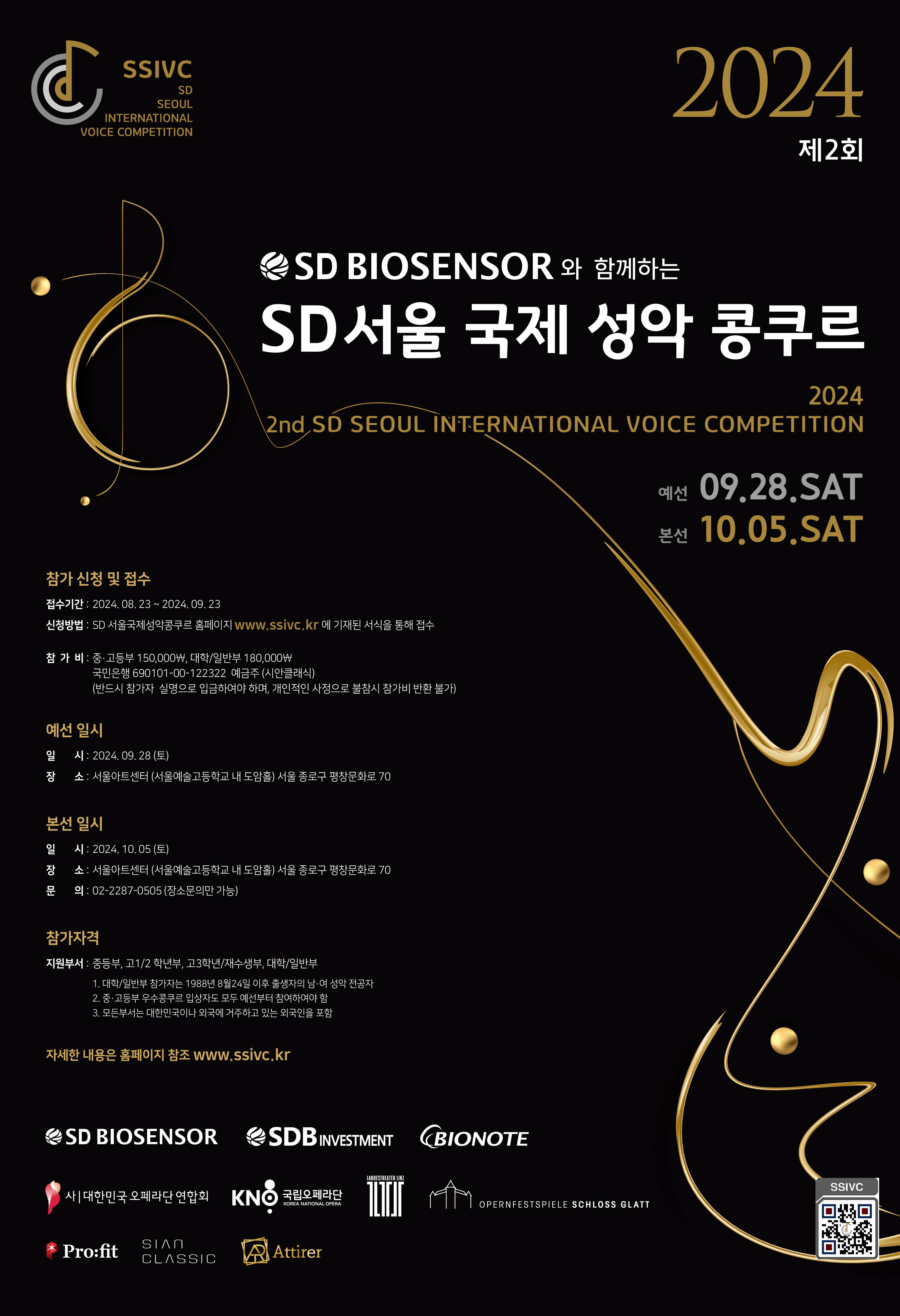 [플레이뉴스 문성식기자] SD그룹(에스디바이오센서, 에스디비인베스트먼트, 바이오노트)이 후원하는 ‘제2회 SD서울국제성악콩쿠르’가 예선은 9월 28일, 본선은 10월 5일 서울아트센터에서 개최된다.