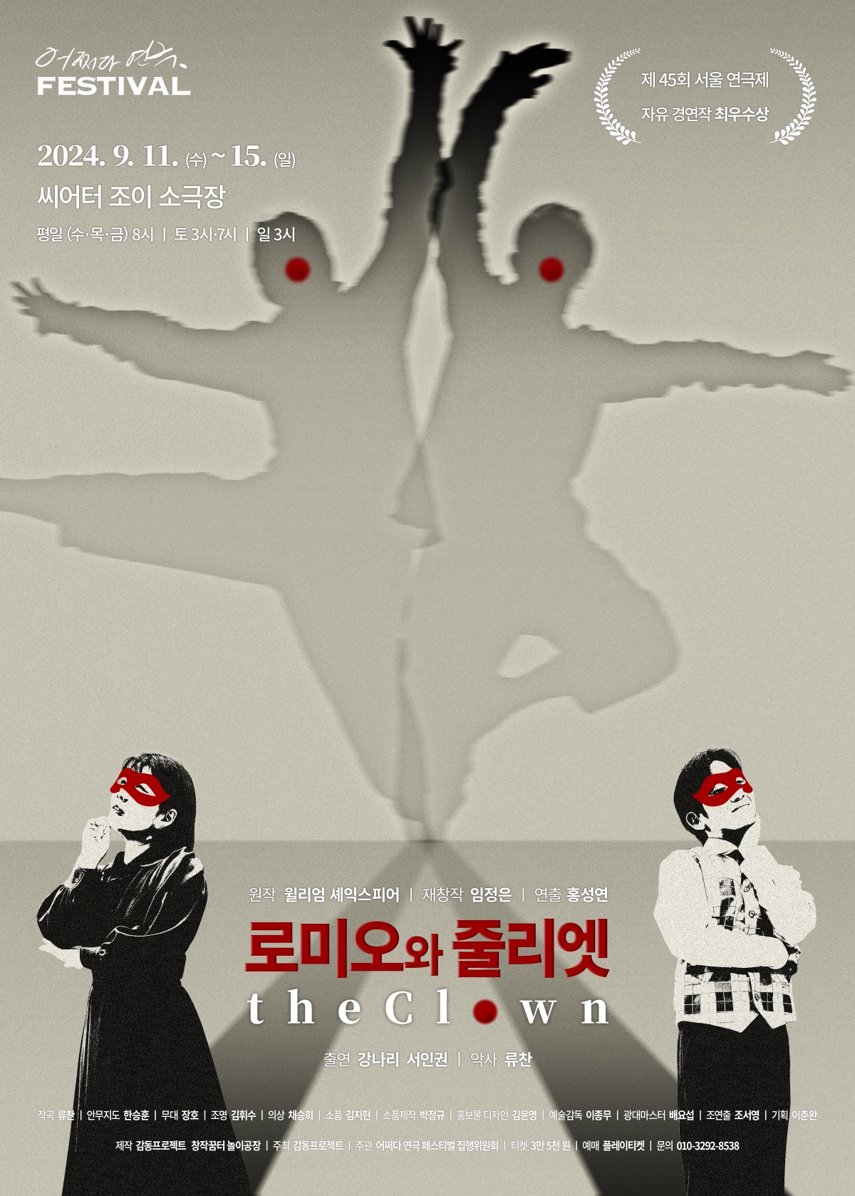 제45회 서울 연극제 자유경연작 최우수상 수상고전의 발랄한 재해석단 두 명의 광대와 한 명의 악사가 펼치는 불멸의 로맨스연극 '로미오와 줄리엣 The Clown'