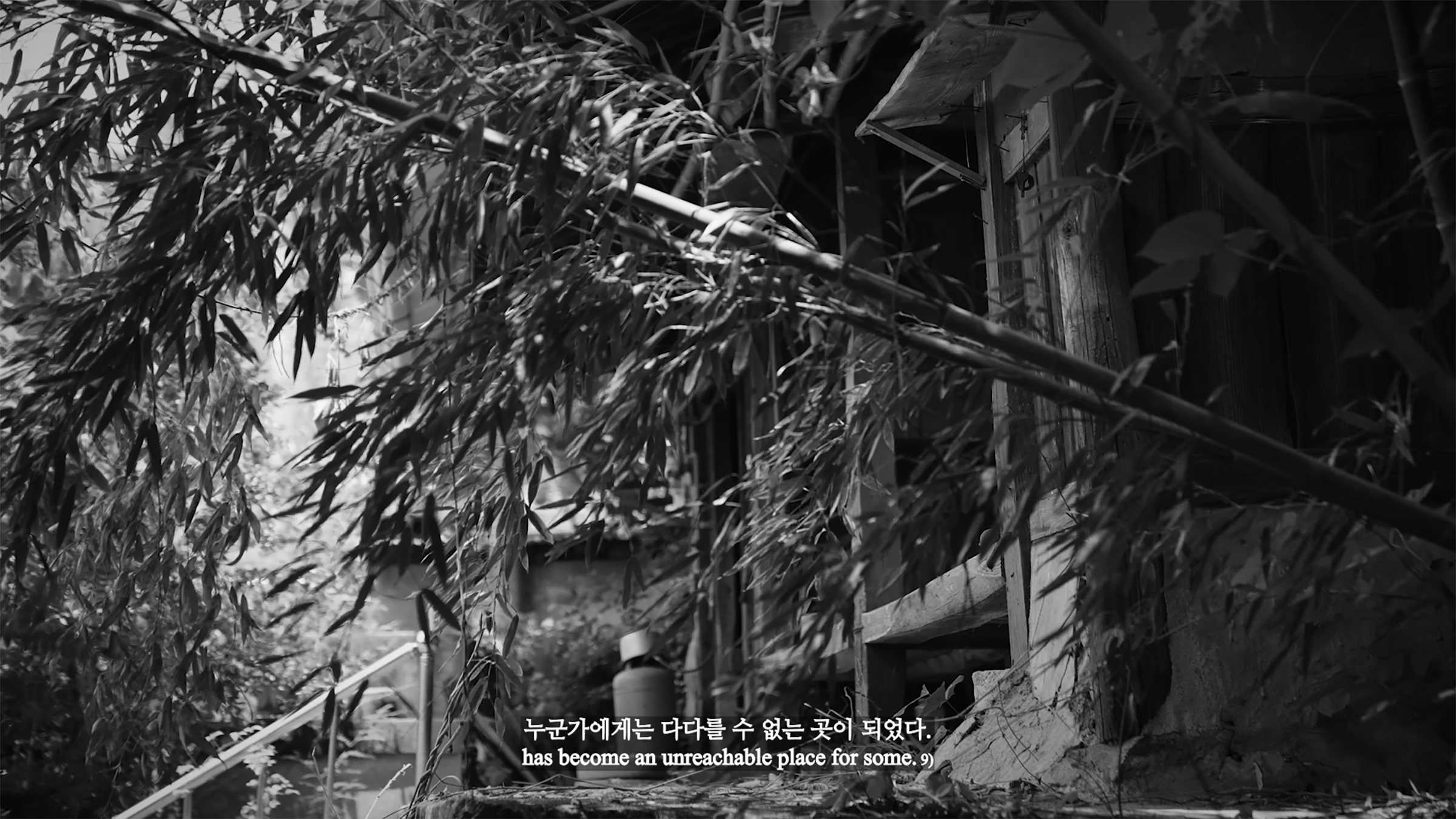 장보윤(b. 1981)은 사진 이미지들을 소재로 존재의 기억과 역사를 다양한 방식으로 재현해왔다. 작업 초기사진 매체에 매료되어 ‘본다’는 기본적인 행위가 가지는 재현의 의미에 주목하였다. 이후, 사진 이미지가 가지는 상실의 효과에 주목하였는데, 사라진 과거의 순간에 작가 스스로를 이입하여, 특정한 장소를 여행하며 이미지의 대상을 재현하는 수행의 과정과 그 여정을 기록하고 글로 옮기는 작업을 전개하고 있다. 2020년 이후 부터는 배우들을 상대로 모큐멘터리 형식의 영상작업을 연출하고, 다채널 편집 작업을 통해 사진 이미지에서 영상 매체로 작업 범위를 확장하고 있다. | 블랙베일2 | ![]() |
