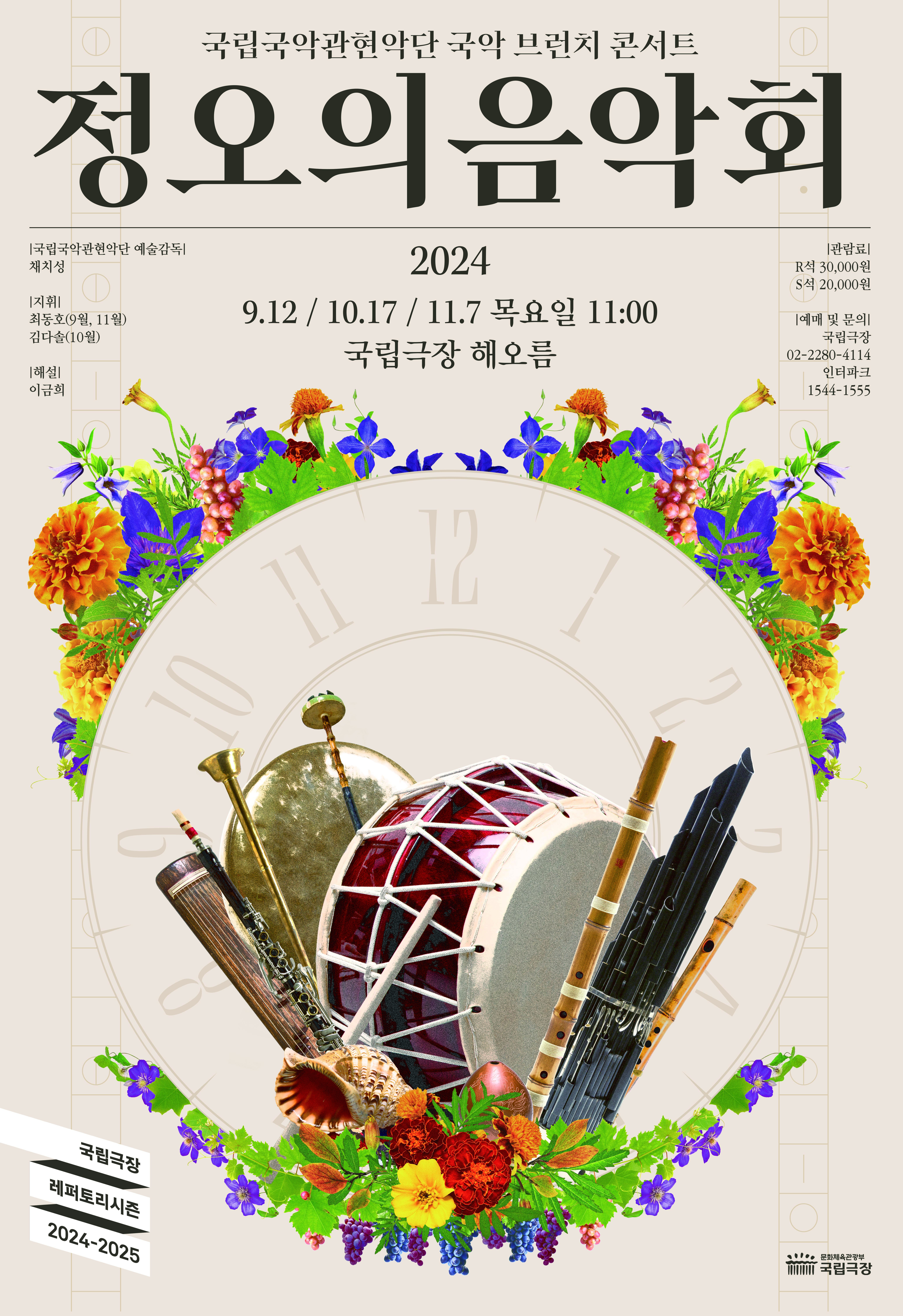 [플레이뉴스 문성식기자] 국립국악관현악단(예술감독 겸 단장 채치성)은 고품격 국악 브런치 콘서트 '정오의 음악회'를 10월 17일(목) 오전 11시 국립극장 해오름극장에서 공연한다.