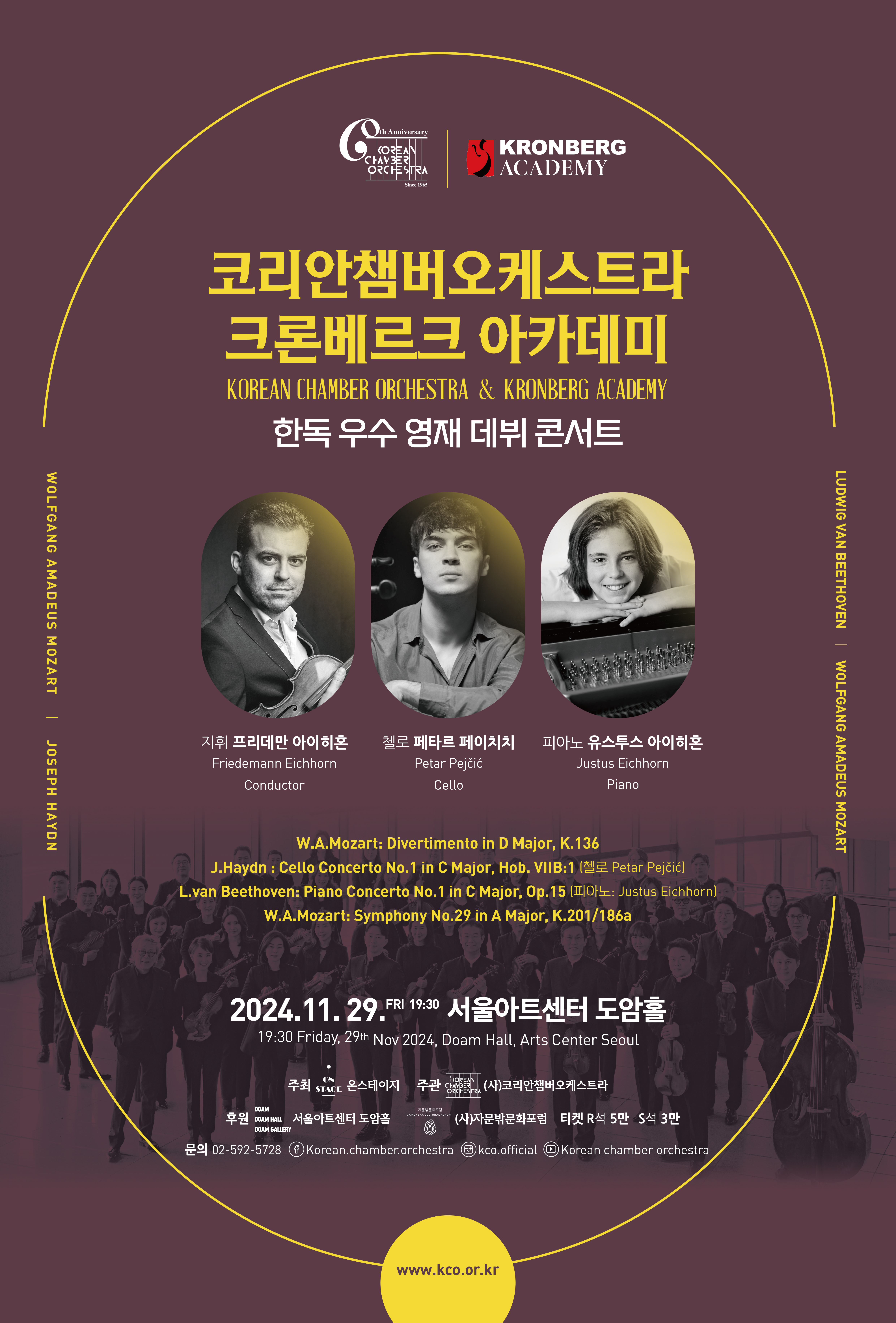 - 2025년 한국 최초 창단 60주년을 맞이하는 KCO와 차세대 글로벌 첼리스트 페타르 페이치치 데뷔 협연
