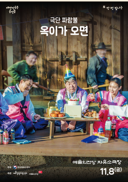 11월은 2편의 지역 우수공연 선정작을 만나볼 수 있다. 11월 8일(금)에는 극단 파람불(강원 속초)의 연극 '옥이가 오면'으로 무대를 채운다.