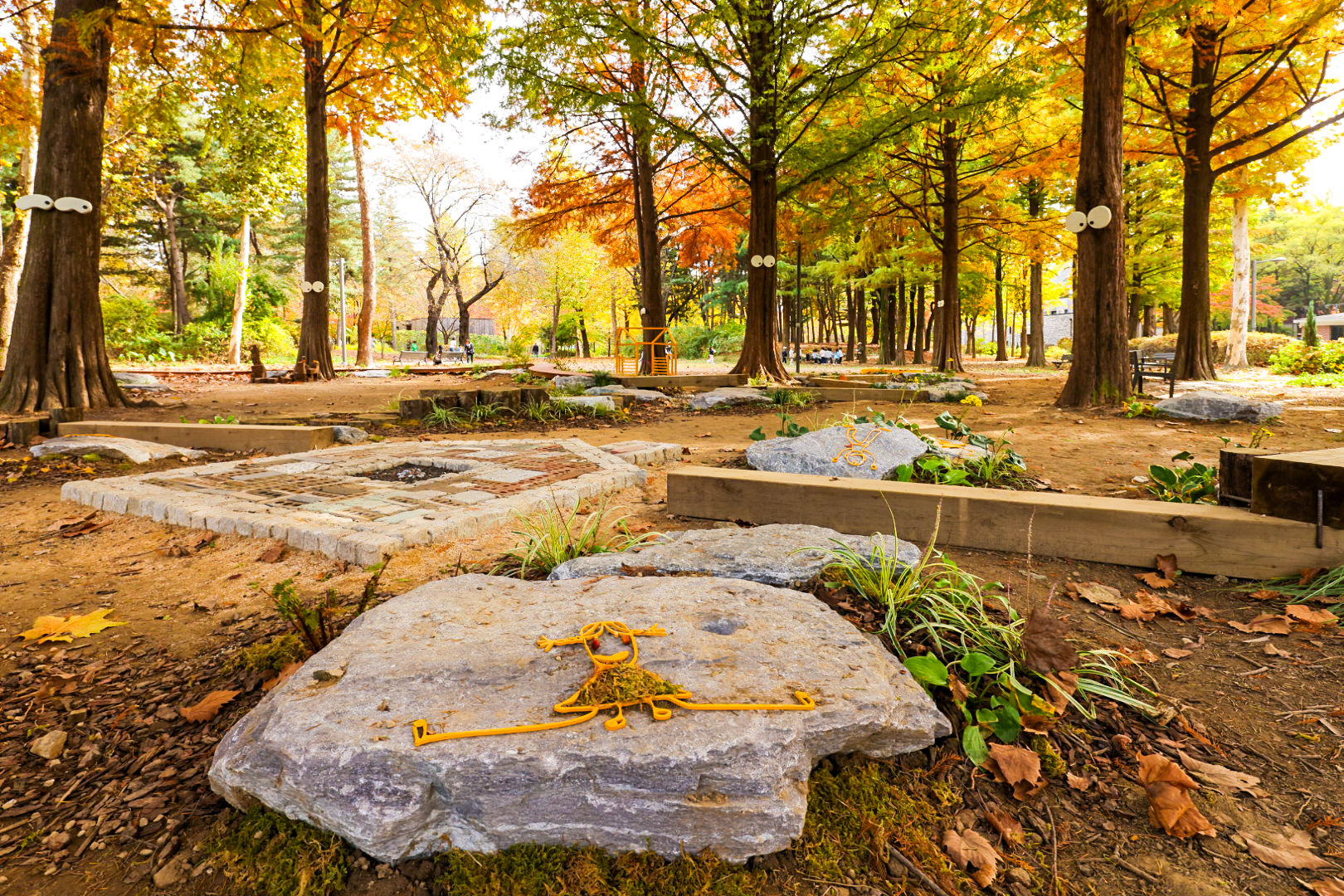 정원은 원형 문을 지나 숲의 재료를 오감으로 느껴보는 ‘느끼기 숲’, 숲속에서 다양한 재료를 찾아 채우고 활용하는 ‘찾기 숲’, 그리고 찾은 재료로 아지트와 캐릭터 친구들을 꾸미는 ‘꾸미기 숲’으로 구성돼 있어 어린이들이 창의적이고 자율적으로 탐구하며 실험할 수 있는 환경을 제공한다.